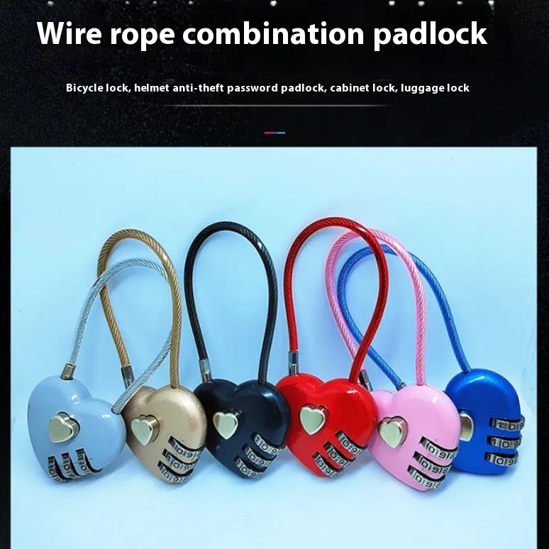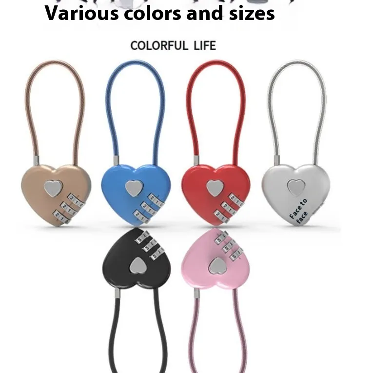 Available in six vibrant colors—black, gray, red, pink, blue, and gold—this lock combines aesthetics with practicality. The long wire rope provides flexibility to wrap around different objects, while the heart shape adds a touch of personalization. Whether you’re commuting, traveling, or gifting a partner, this lock offers both sentiment and security.