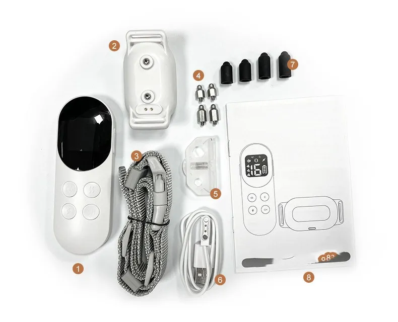 Transmitter * 1+receiver * 1+collar strap * 1+long and short shock pillars * 1+shock test light * 1+magnetic charger * 1+long and short