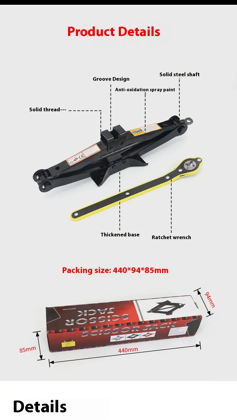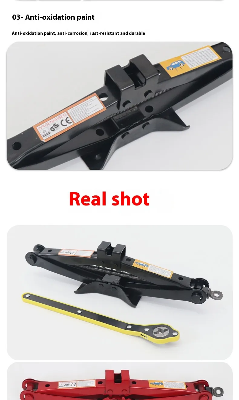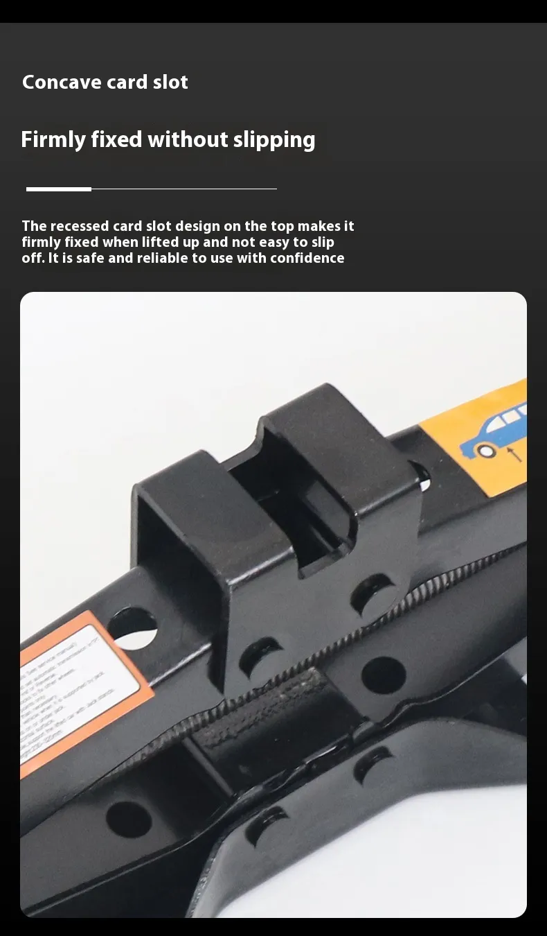 Be prepared for roadside emergencies with this portable 2T ratchet scissor jack. Built from durable steel, it offers reliable strength and stability, making tire changes and car lifting safe and hassle-free. Its labor-saving ratchet design makes operation smoother and easier compared to traditional jacks.
