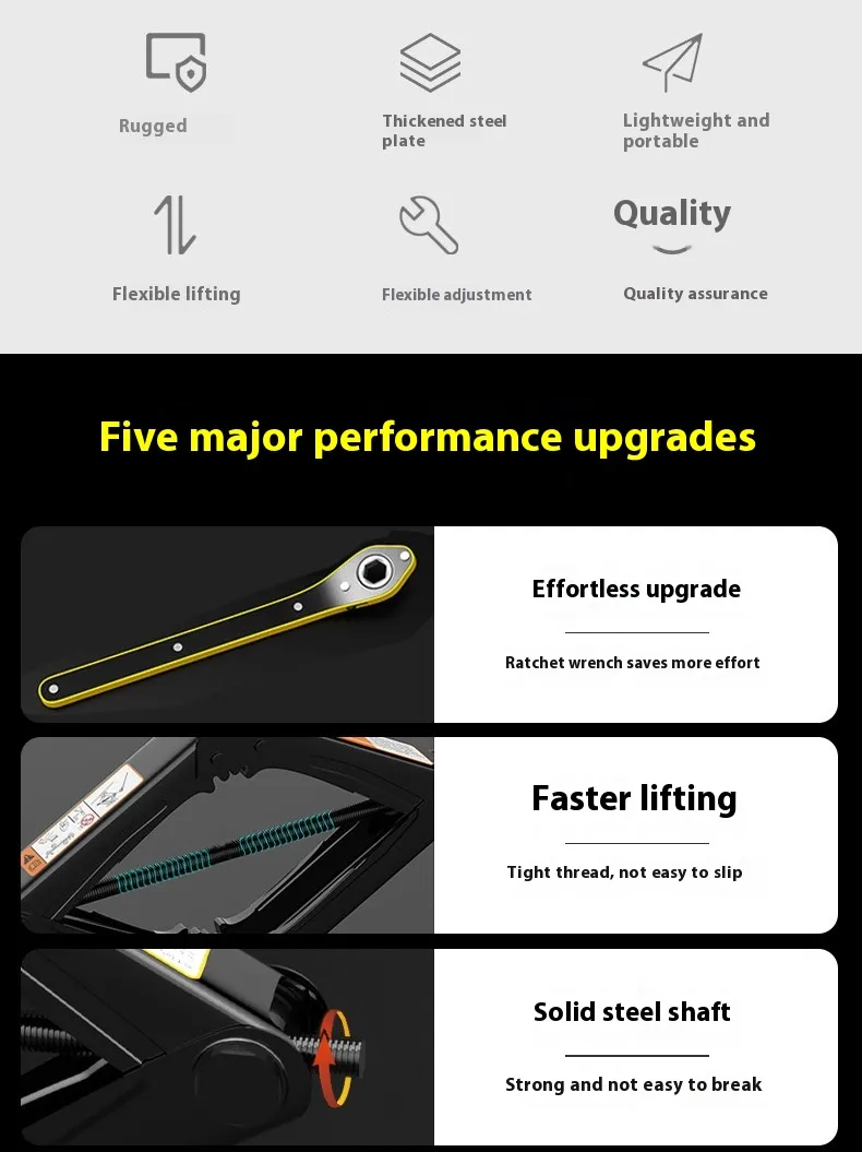 Perfect for everyday drivers and professional mechanics, this jack combines portability with strength. Whether you’re performing maintenance at home or dealing with an emergency on the road, this portable ratchet scissor jack ensures safety and convenience.