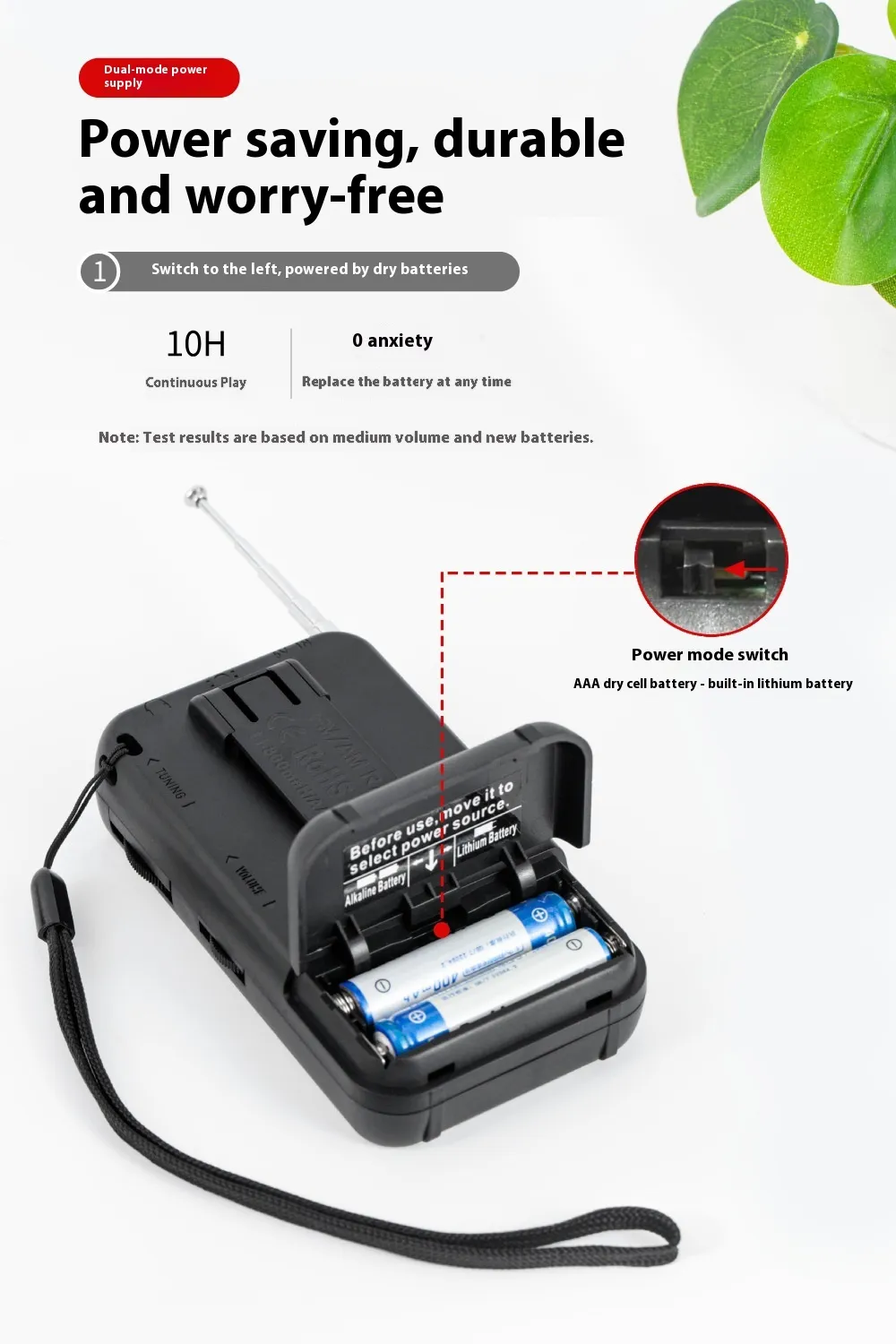 Featuring a dual power supply system, this radio offers reliable performance whether using traditional batteries or external power. The built-in flashlight adds extra convenience, making it a handy tool during power outages, camping, or nighttime use.