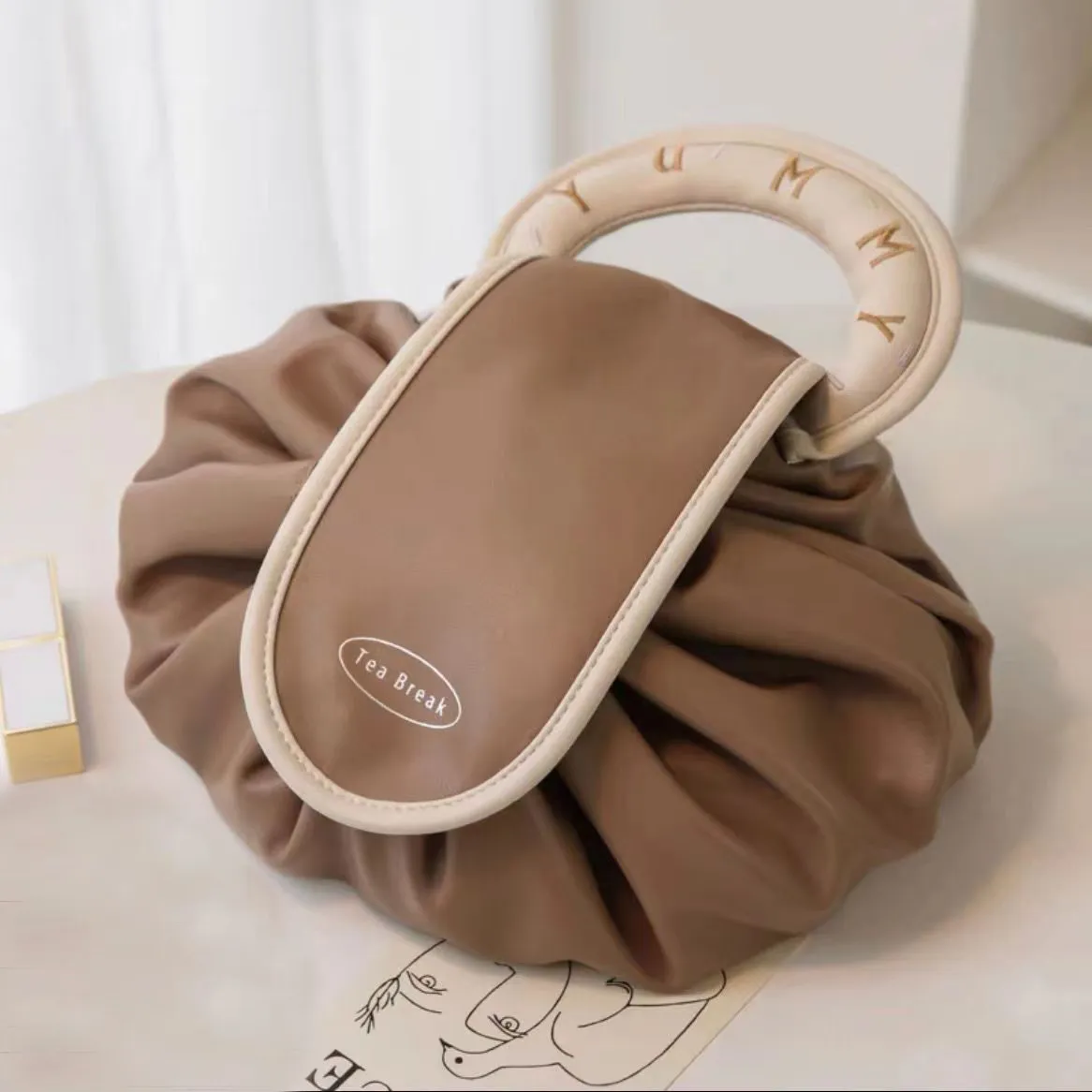 Portable Drawstring Cosmetic Bag – Large Capacity Waterproof PU Makeup Handbag
