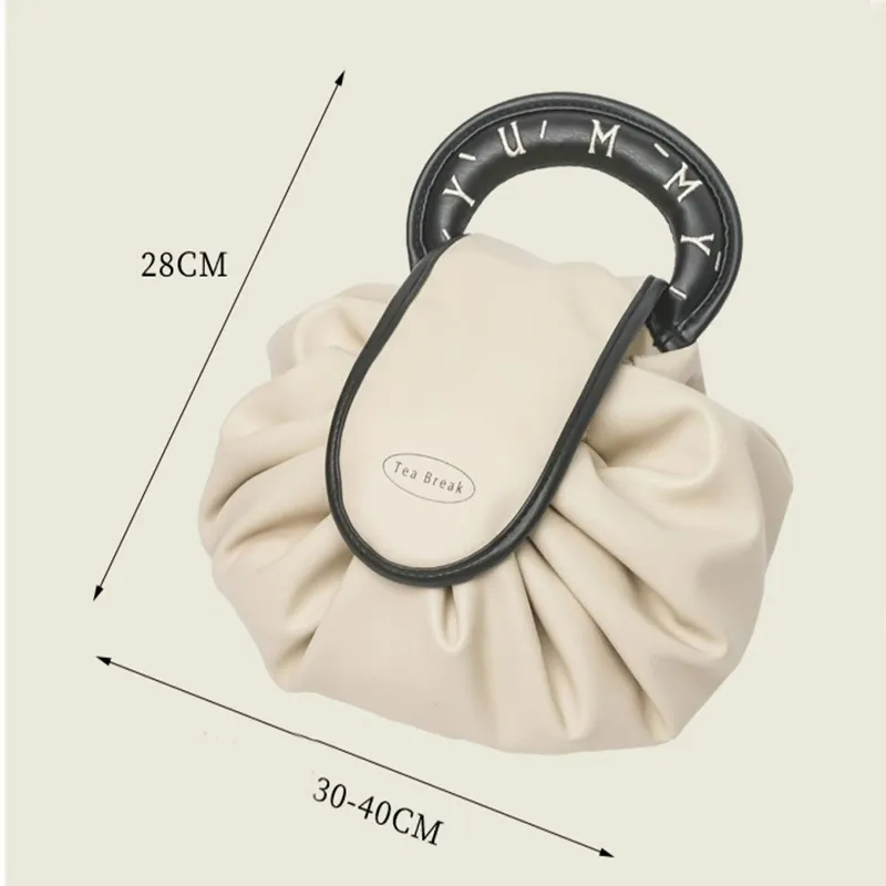 Portable Drawstring Cosmetic Bag – Large Capacity Waterproof PU Makeup Handbag with Handle for Travel & Storage