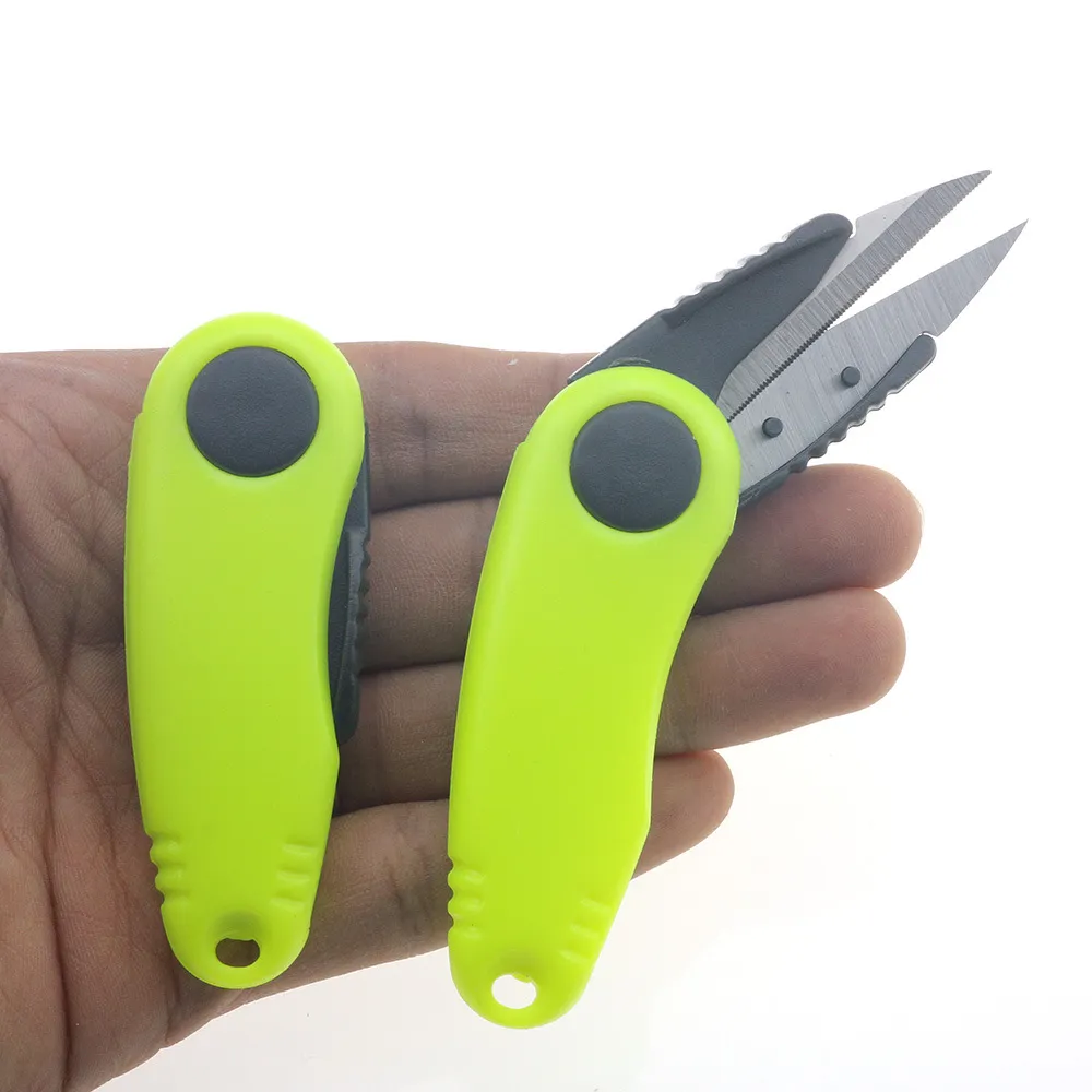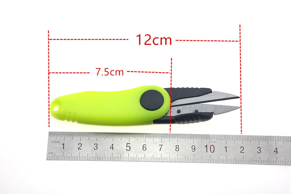 Measuring approximately 9 cm when unfolded, these compact scissors are not only perfect for fishing but also versatile enough for camping, hiking, and other outdoor activities. Their lightweight and durable construction make them a reliable tool for any adventure.