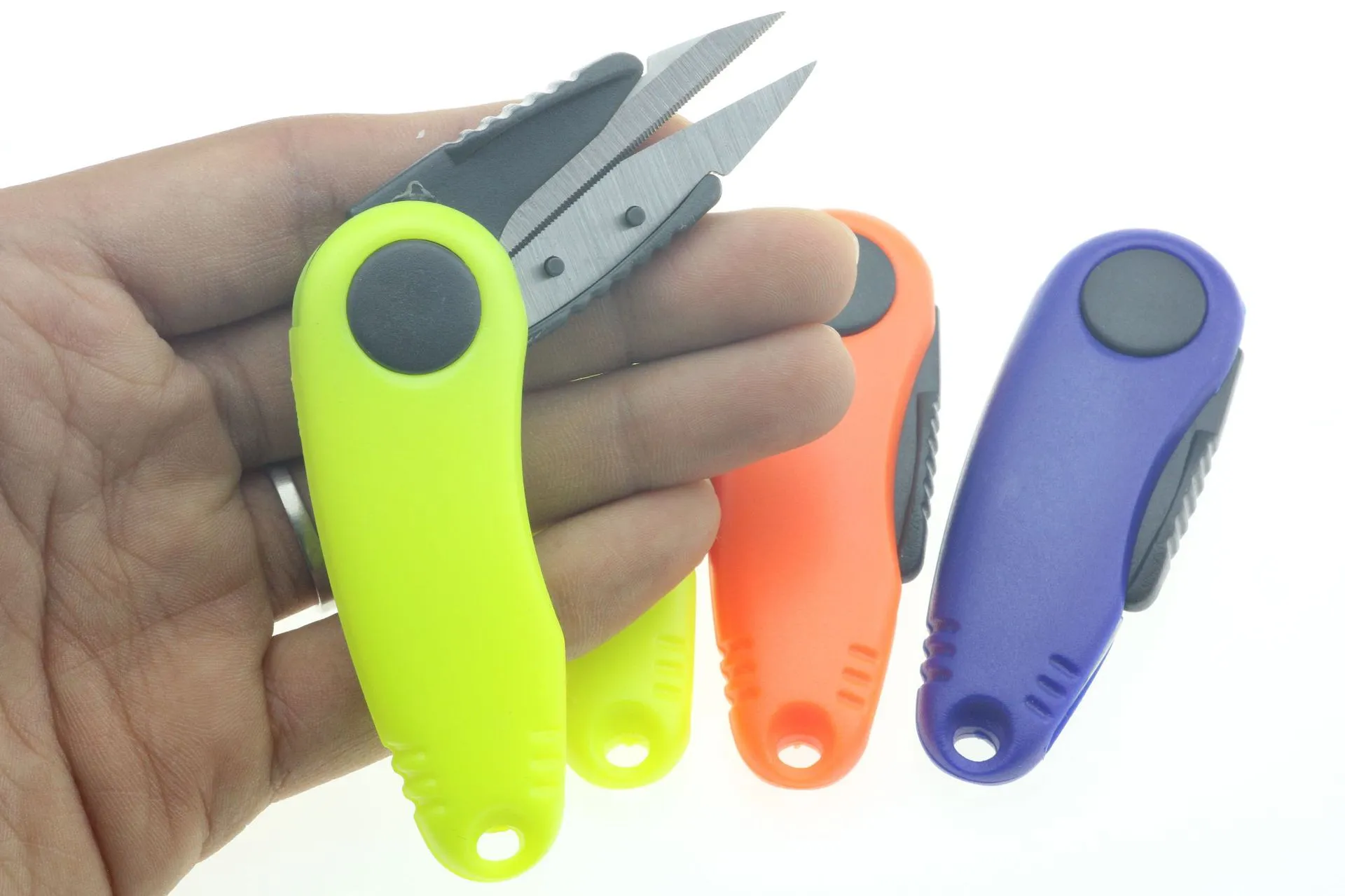 Measuring approximately 9 cm when unfolded, these compact scissors are not only perfect for fishing but also versatile enough for camping, hiking, and other outdoor activities. Their lightweight and durable construction make them a reliable tool for any adventure.