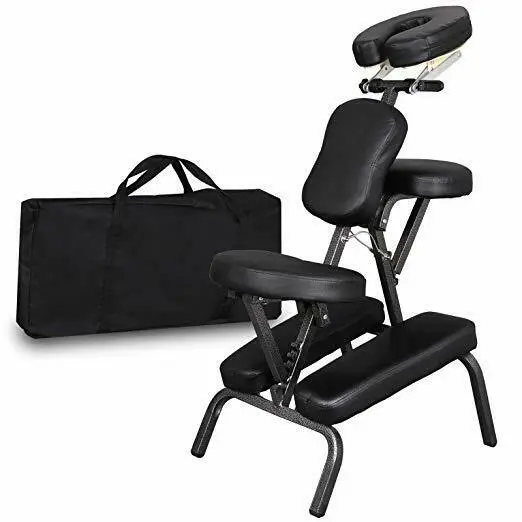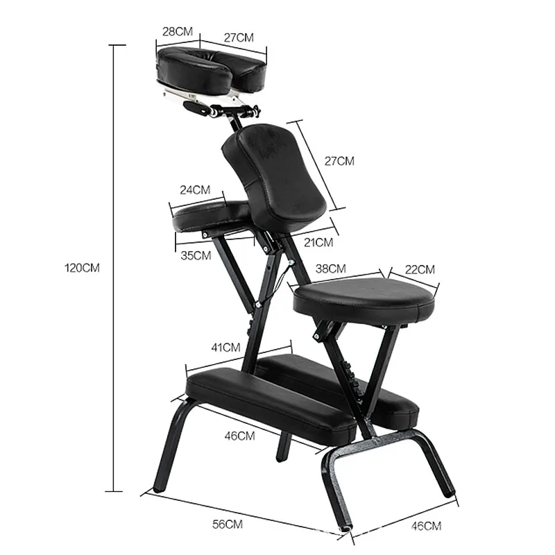 Portable Folding Tattoo & Massage Chair – Adjustable Wooden Steel Chair with PVC Leather & Storage Bag