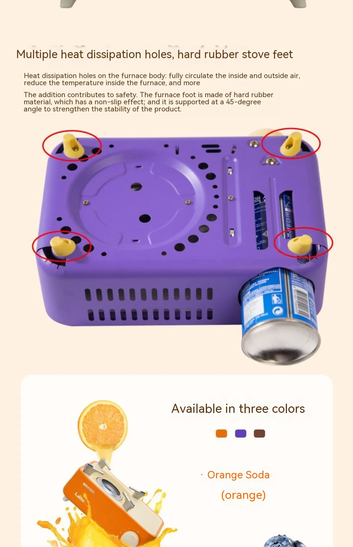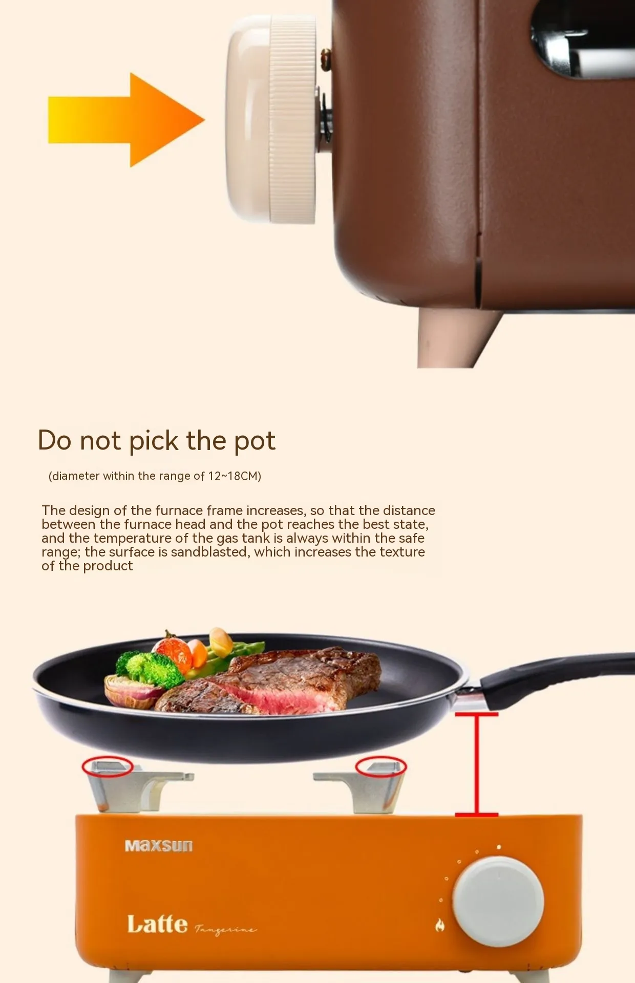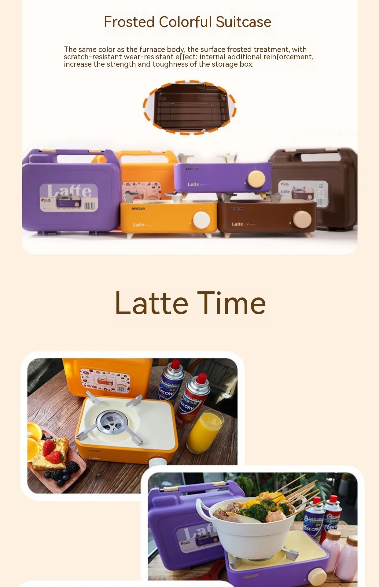 Available in three stylish color options—LATTE orange, LATTE purple, and LATTE brown—the Portable Gas Stove Outdoor Mini Windproof Hot Pot combines practicality with aesthetic appeal. This stove is designed for use with a cassette furnace, ensuring safe and efficient cooking on your outdoor trips. With this portable stove, you can enjoy cooking in the great outdoors, knowing that you're prepared for any adventure.