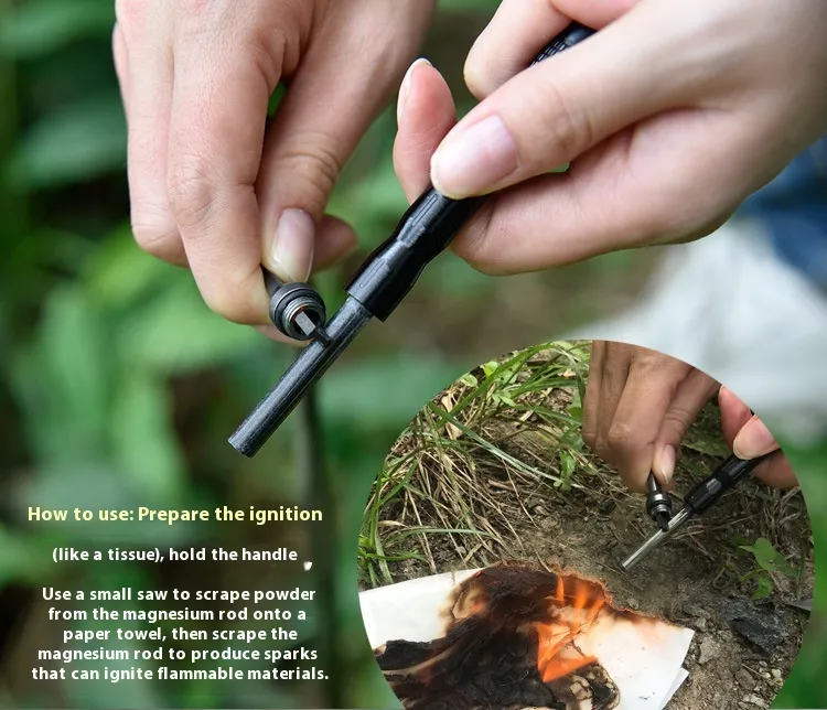 Its waterproof design ensures functionality in rain or damp environments. Ideal for creating campfires, cooking fires, or emergency warmth, this portable fire maker combines durability, practicality, and compact design to meet all your outdoor fire-starting needs.