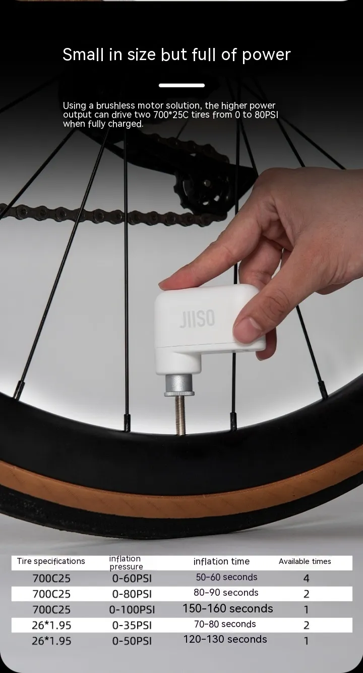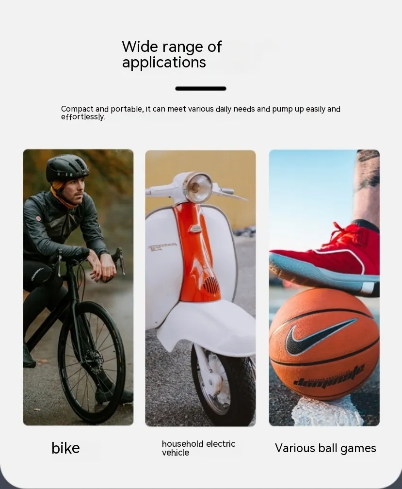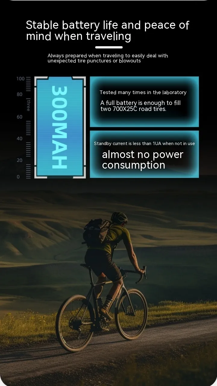 Built with nylon and aluminum alloy, the pump is lightweight yet highly durable. With a 7.4V 300mAh lithium battery and Type-C charging support, it provides up to 100PSI air pressure with a working time of around 200 seconds. This makes it perfect not just for bicycles but also for sports balls and small inflatables.