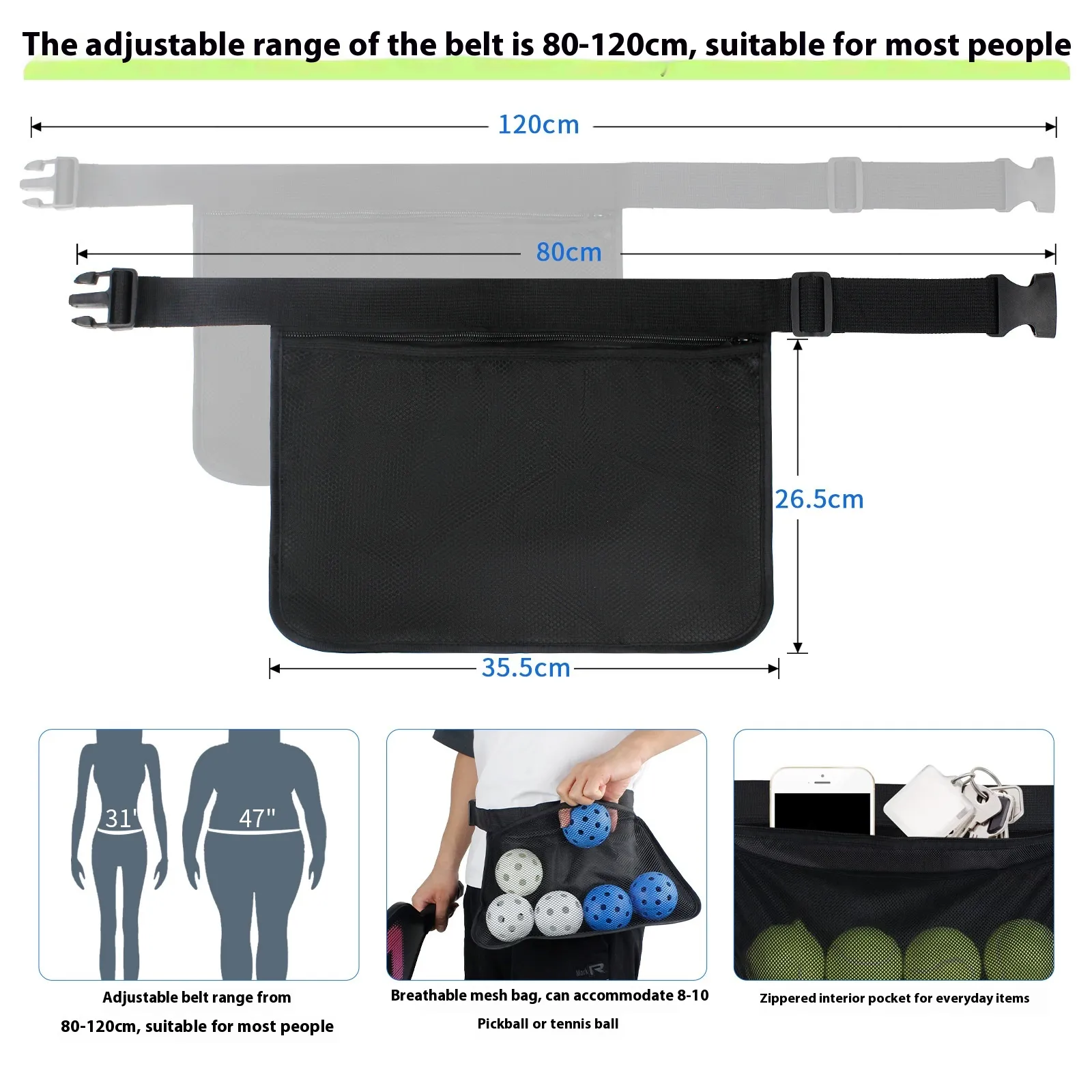 Crafted from high-quality Oxford cloth, the bag measures 35.5 × 26.5 cm and offers ample space without being bulky. The rugged material ensures durability and resistance to wear and tear, making it suitable for intense training sessions or long outdoor use. Its hands-free waist design makes ball retrieval easy during games, workouts, or coaching.