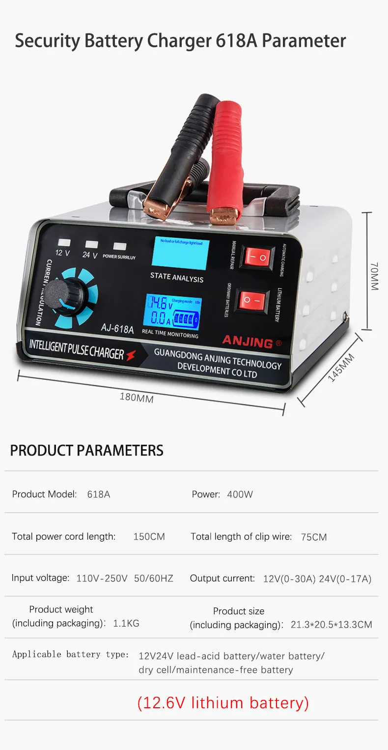 PowerMax 400W Car Battery Charger – 12V/24V Pulse Repair Smart