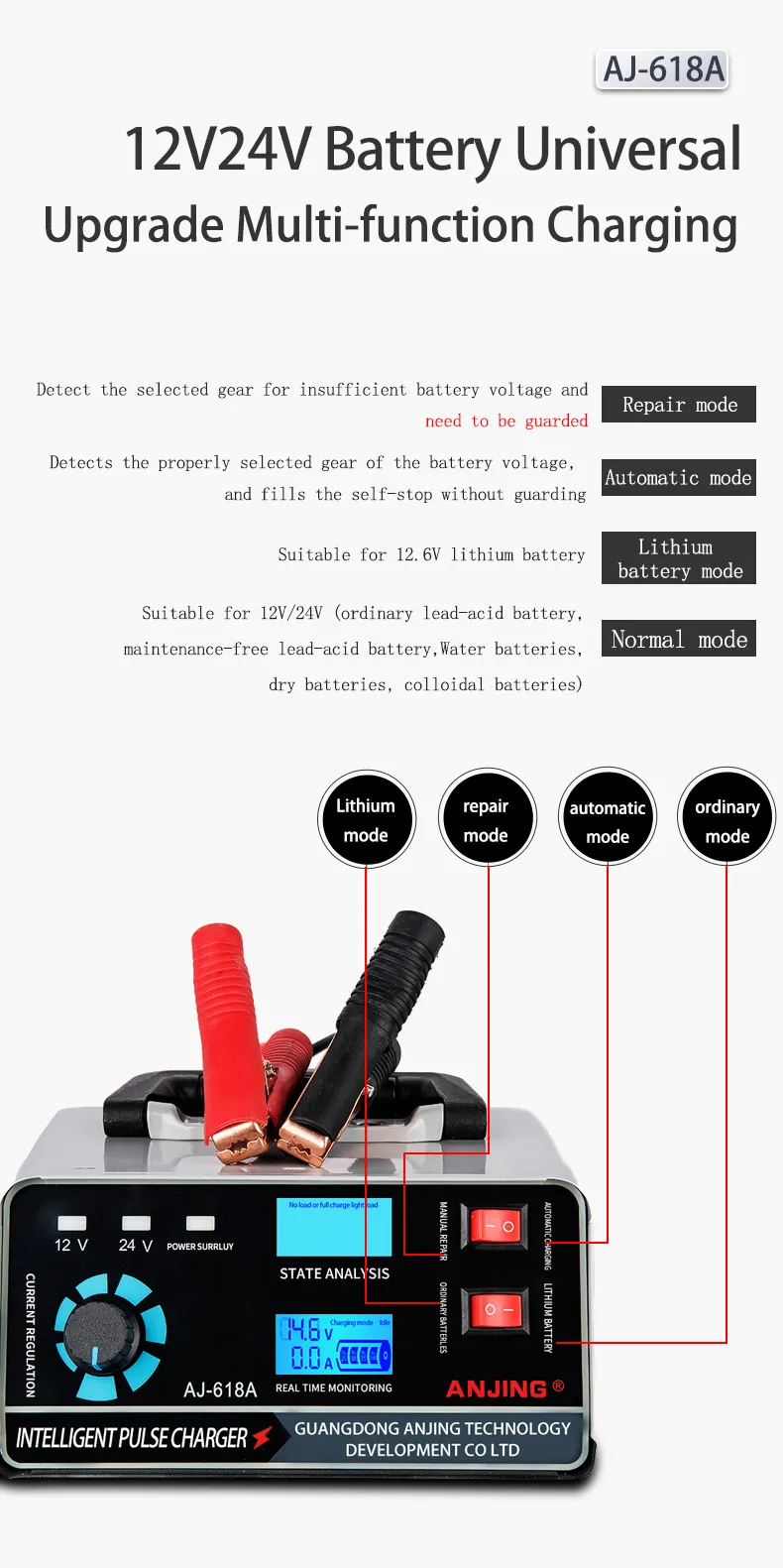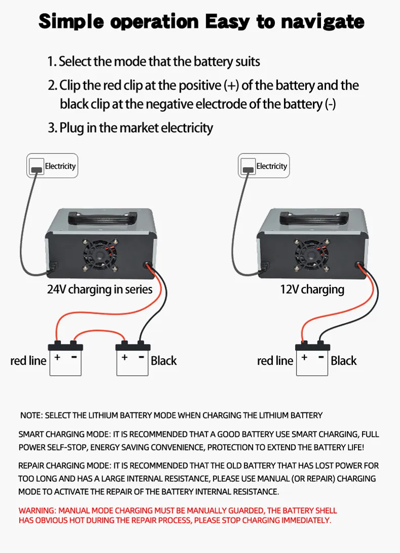 With 400W of high output power (DC12V/30A) and universal AC110–240V input, this charger is ideal for cars, motorcycles, trucks, and other battery-driven equipment. Certified with CE, FCC, ROHS, UKCA, UL, and PSE, it guarantees international-grade safety and reliability.