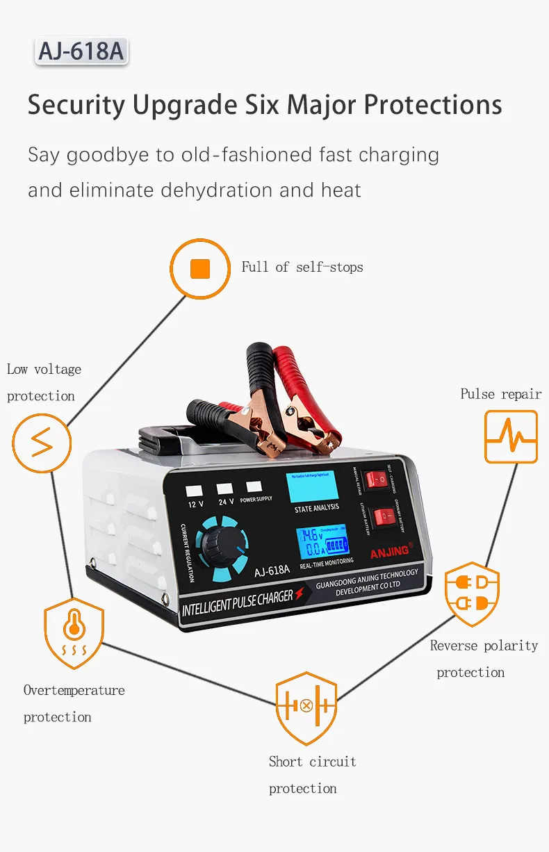 Equipped with multiple protection systems—including overcharge, overvoltage, short-circuit, and reverse connection protection—the PowerMax ensures total safety during operation. The intelligent indicator displays real-time charging status, while automatic temperature regulation prevents overheating and power loss.