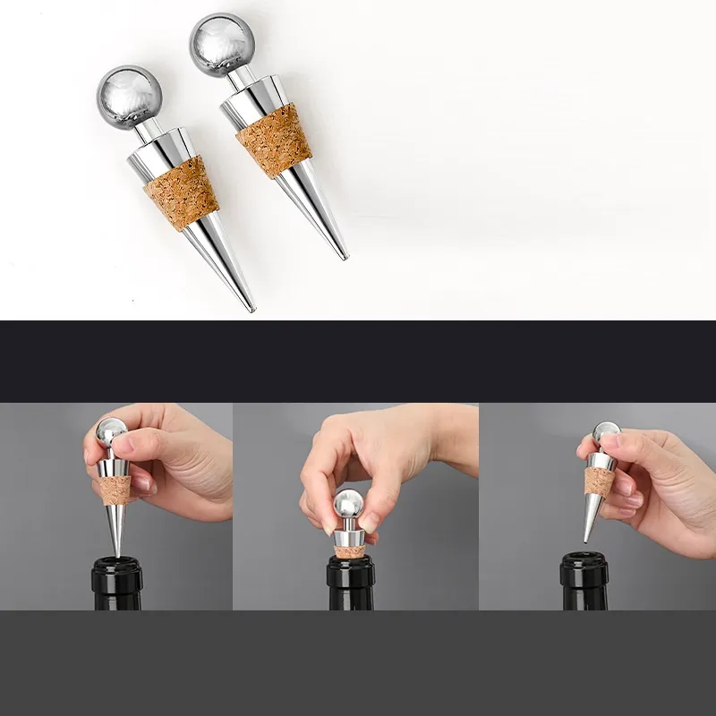 Whether you're preserving a fine red or sparkling white, the Premium Metal Cork Wine Stopper is ideal for a variety of occasions. Perfect for home bars, restaurants, or as a gift, this wine bottle seal is both decorative and practical. With its blend of modern and rustic elements, this wooden wine stopper complements all bottle types. Enjoy a simple, stylish, and effective way to protect your wine with a metal wine stopper designed to impress.