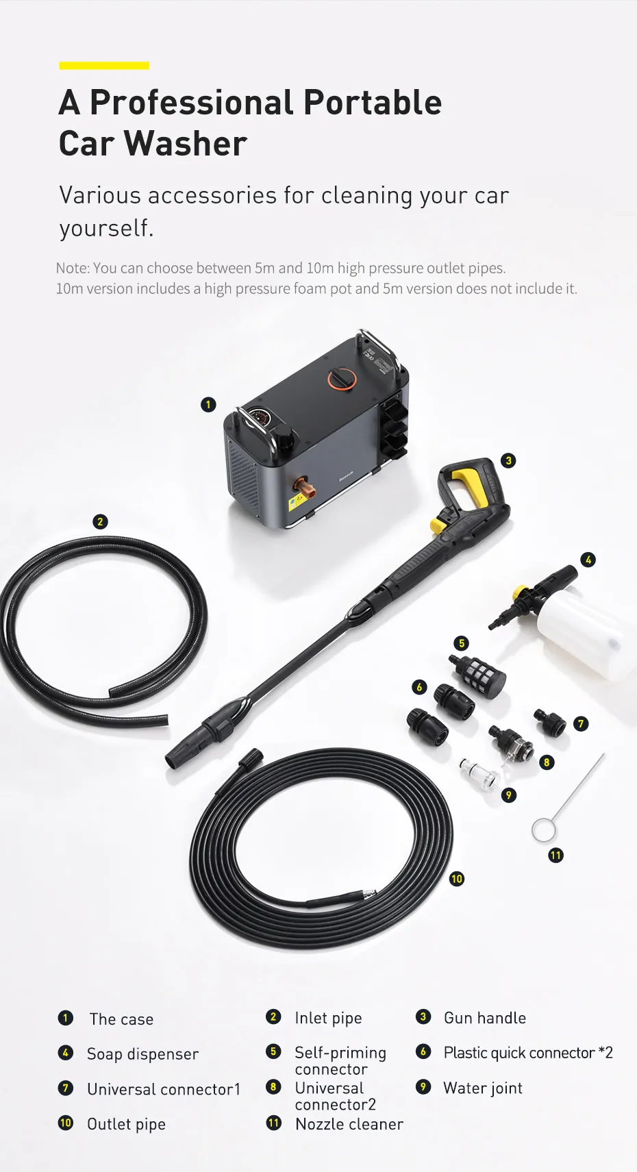 CRXCJ-C0AοΌIncluding: host*1+high-pressure water gun*1+outlet pipe 10m*1+inlet pipe 2m*1+connector*3 high-pressure foam pot*1+universal connector/self-suction connector*1