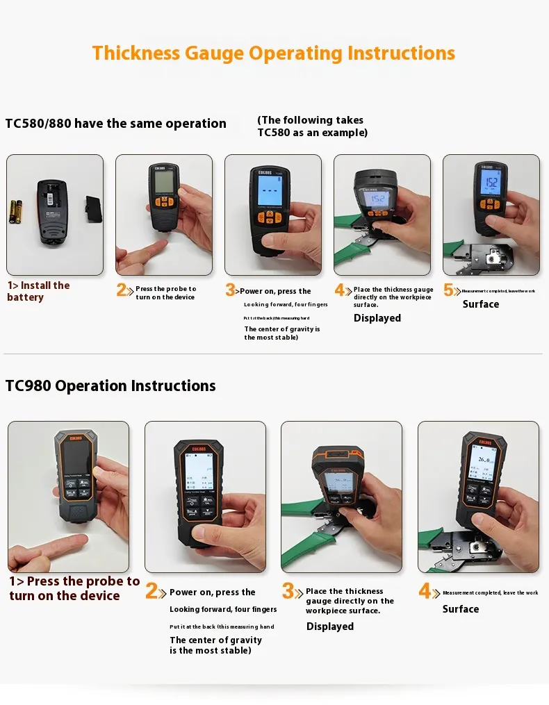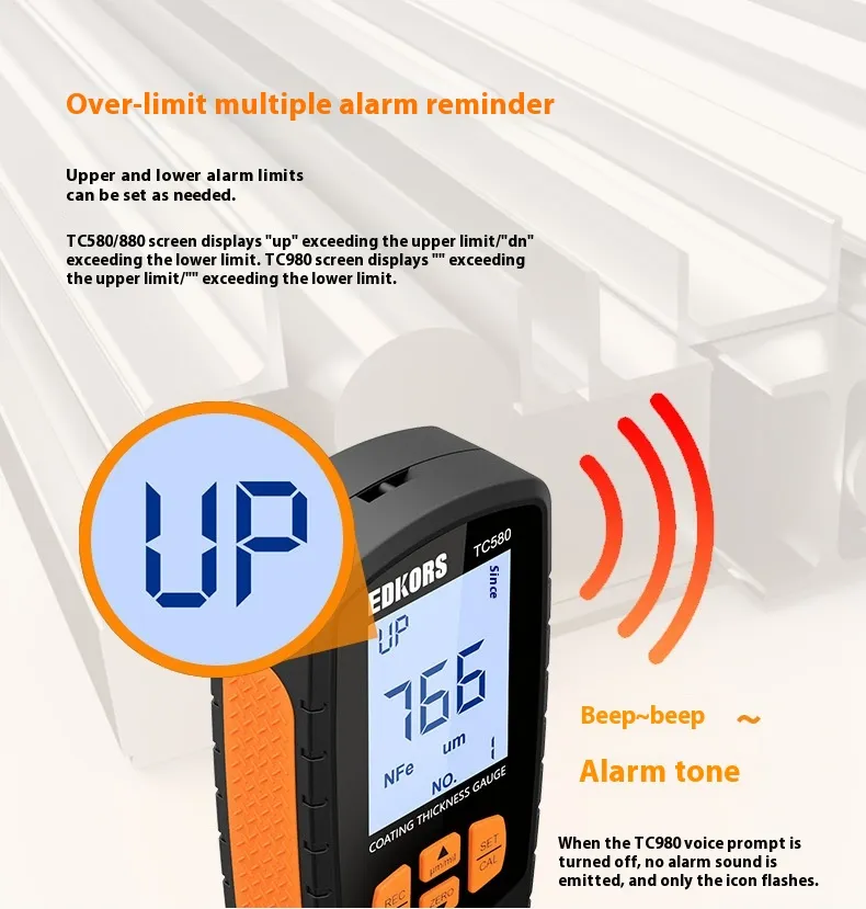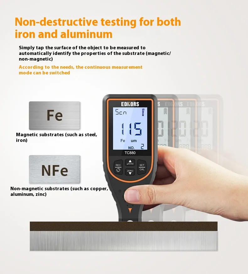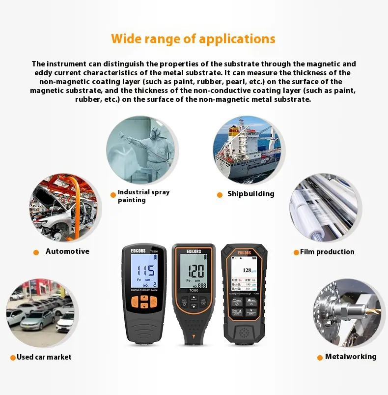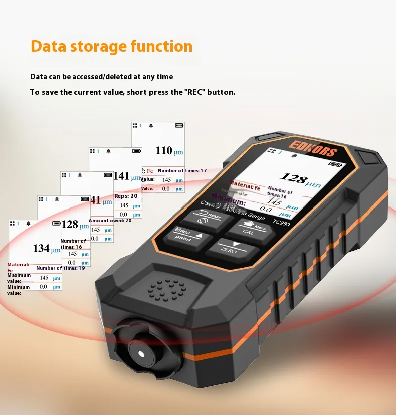 Equipped with the TC880 dual-purpose system, this paint thickness gauge quickly identifies repainting, hidden damage, or irregular coatings. The package includes calibration sheets, substrates, and a portable carrying case, ensuring reliable results wherever you go.