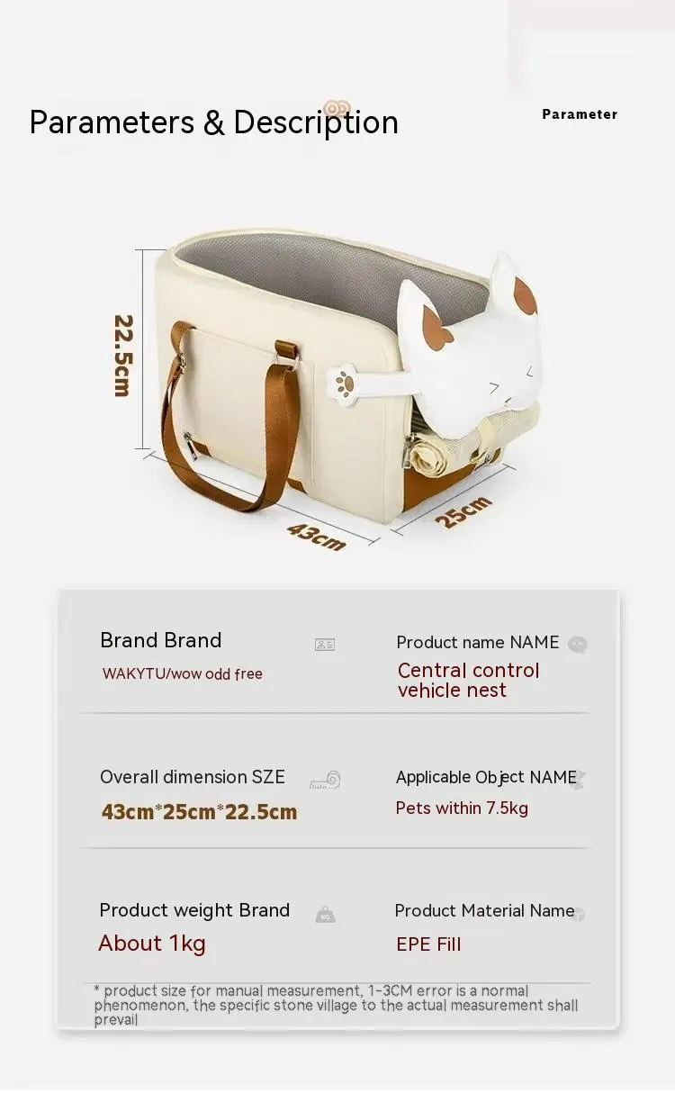 With a spacious 43×25×22.5cm interior, this carrier easily accommodates pets weighing up to 15kg, giving them enough room to rest or nap during the journey. The one-shoulder strap design allows for effortless portability, while the stable base doubles as a comfortable car pet bed—perfect for long trips or daily rides.