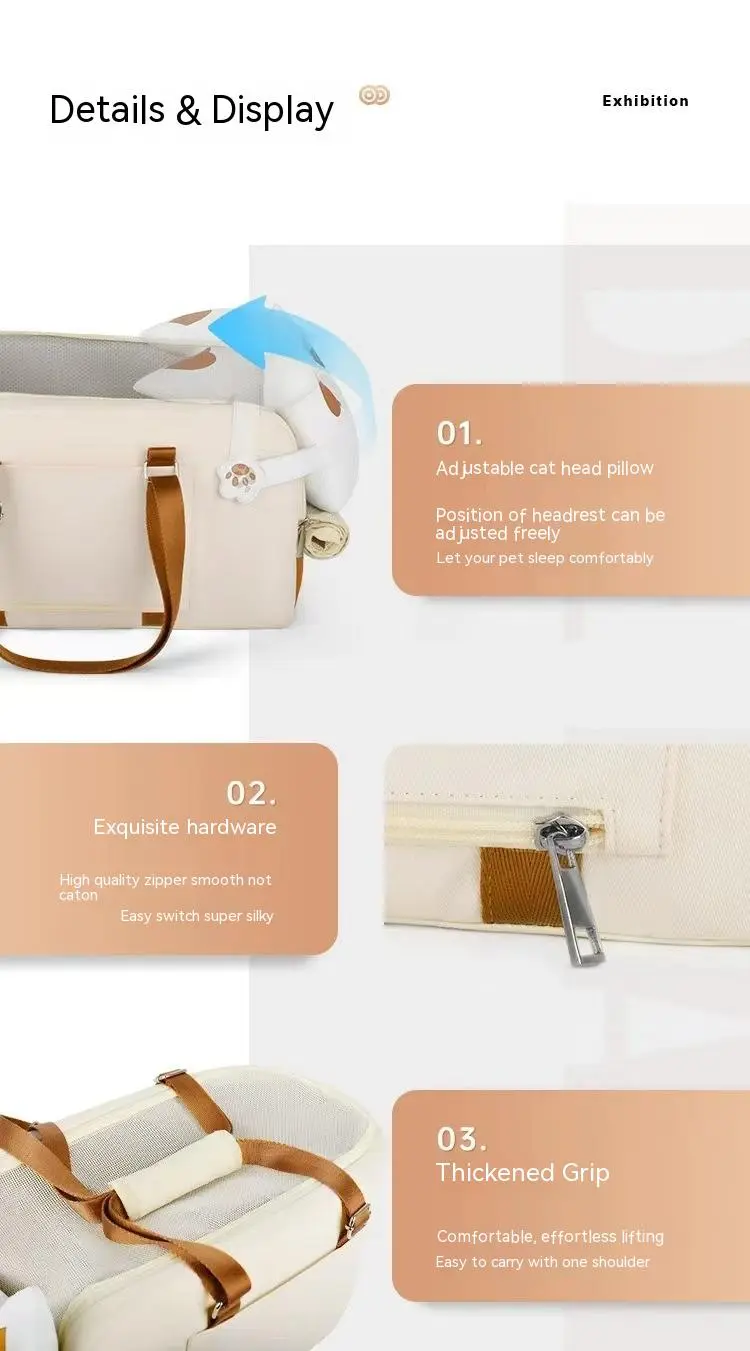 PurrVoyage Portable Cat Travel Carrier – One-Shoulder Pet Flight Bed