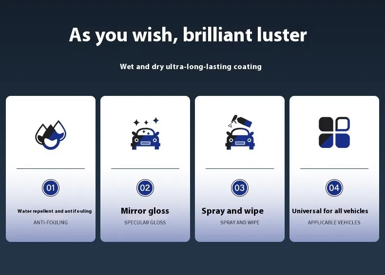 Usage: Clean the paint surface thoroughly, then spray the product evenly onto the paint surface, wipe dry with a towel to brighten it up,