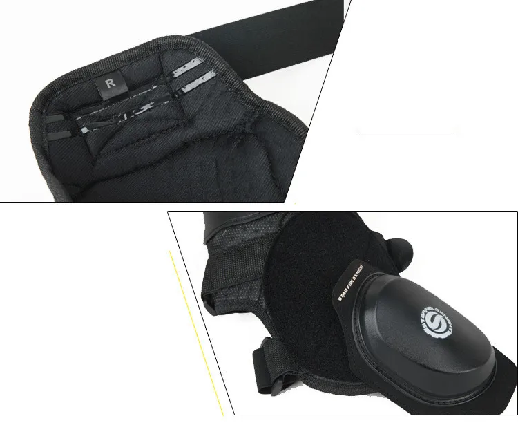 Made from durable PP material with added sound absorption, the pads feature reflective strips for visibility, a strong grinding bag for abrasion resistance, and an ergonomic design that ensures a secure fit. Lightweight and sturdy, they are built to handle demanding riding conditions.