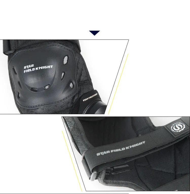 Made from durable PP material with added sound absorption, the pads feature reflective strips for visibility, a strong grinding bag for abrasion resistance, and an ergonomic design that ensures a secure fit. Lightweight and sturdy, they are built to handle demanding riding conditions.