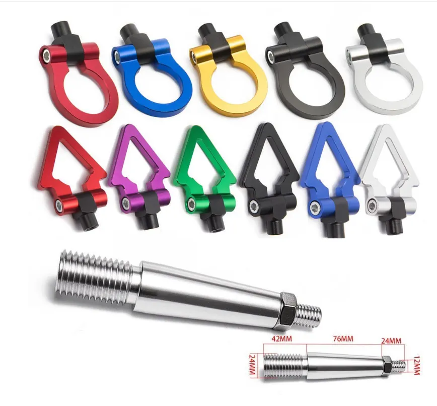 Available in a variety of vibrant colors and shapes—including red, black, gold, blue, silver (round), and red, black, purple, blue, silver, green (triangle)—this hook fits personal style preferences and adds a unique touch to your EVO. Ideal for racing enthusiasts, off-roaders, and everyday drivers, it’s a versatile addition to your vehicle’s exterior.