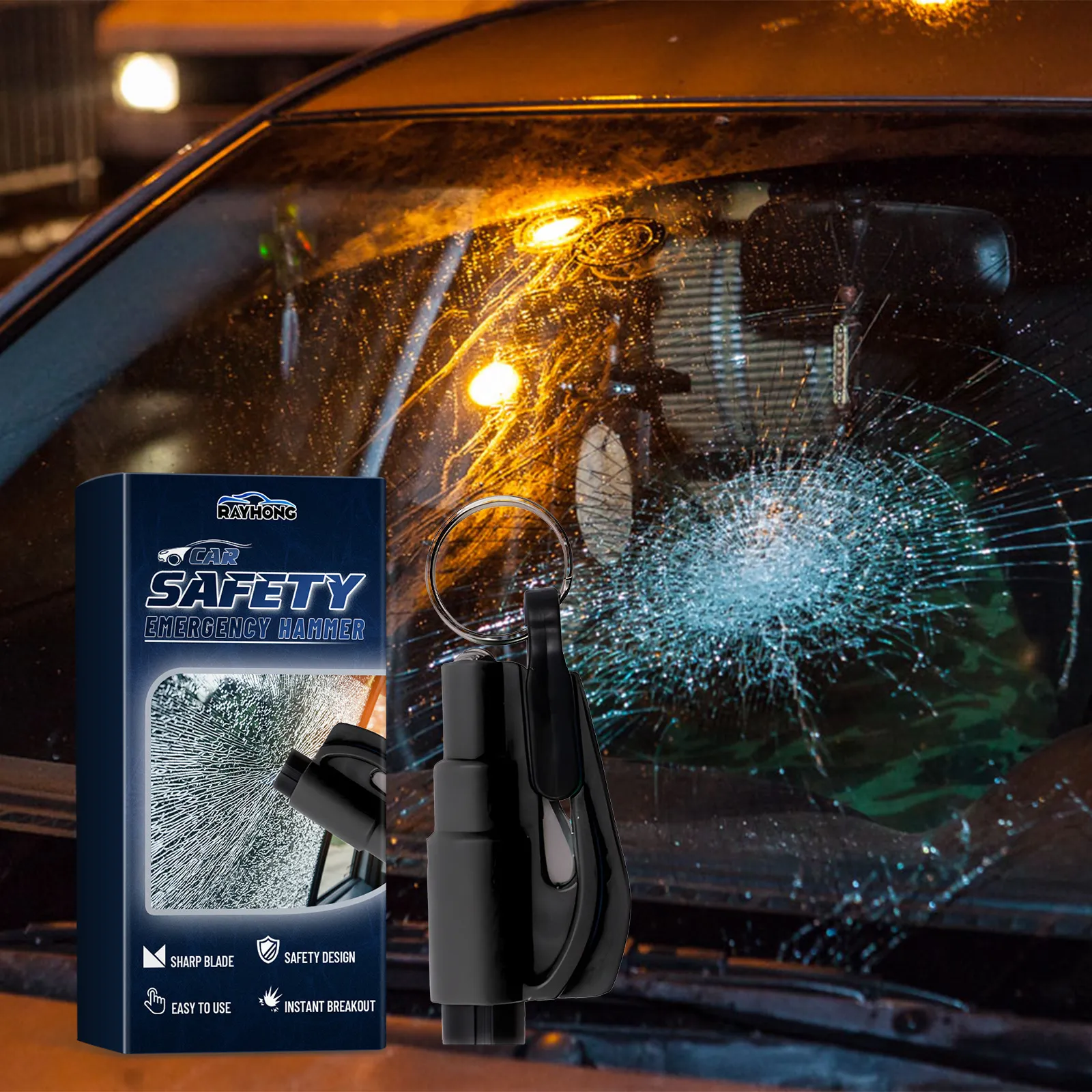 This emergency hammer features a strong, impact-focused head that efficiently shatters car windows when aimed and pressed firmly against the glass. The integrated safety blade includes a protective buckle to prevent accidental cuts, ensuring safe and controlled operation. With the blade exposed, it cleanly slices through seatbelts, helping free trapped passengers quickly.