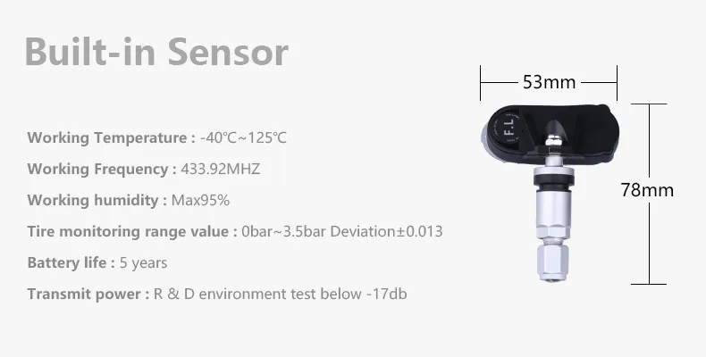 Crafted from durable PC material and powered by an Infineon chip, this USB TPMS ensures reliable and accurate performance. Its clear LCD display offers real-time updates, while the compact design saves space inside your car. Improve safety, extend tire life, and enhance fuel efficiency with this essential tire monitoring system.