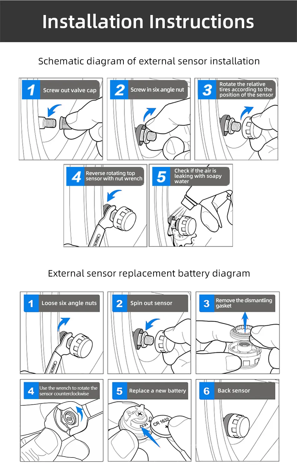Crafted from durable PC material and powered by an Infineon chip, this USB TPMS ensures reliable and accurate performance. Its clear LCD display offers real-time updates, while the compact design saves space inside your car. Improve safety, extend tire life, and enhance fuel efficiency with this essential tire monitoring system.