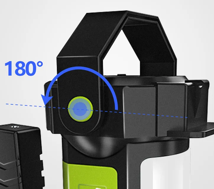 This rechargeable camping lantern torch is a versatile lighting solution designed for outdoor adventures, emergency use, and work environments. Featuring a compact yet rugged body, it combines the functionality of a lantern and a handheld torch, making it ideal for camping, hiking, garages, and power outages. The sturdy base allows stable placement on flat surfaces.