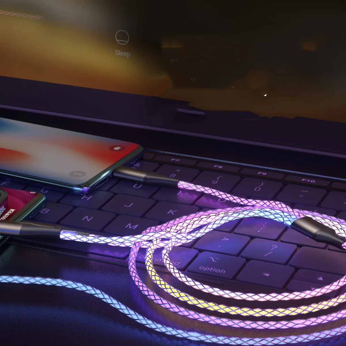 Ideal for tech lovers who value both function and flair, the RGB One-Drag-Three Illuminating 3-in-1 Fast Charging Data Cable keeps you connected with efficiency and style. Its compact, lightweight design makes it easy to carry in your bag, ensuring you're always prepared with a reliable charging solution wherever you go.