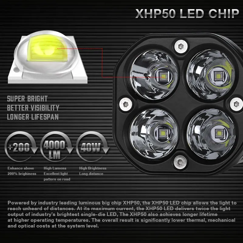 Operating at 12–80V and 1–3A, this LED spotlight features high-quality new lamp beads with an impressive service life of up to 50,000 hours. Available in white or yellow light, it provides clear, reliable illumination for night driving, work sites, or off-road excursions.