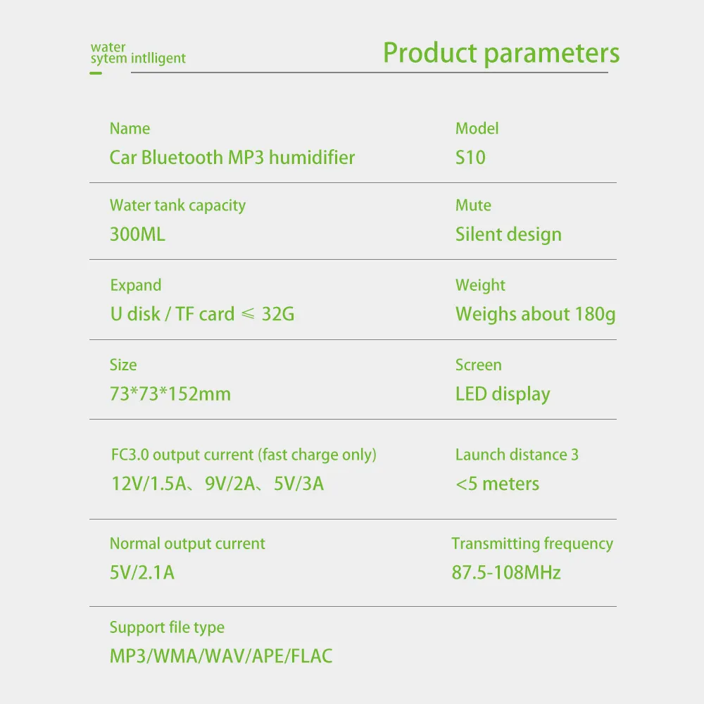 S10 Car Bluetooth Aroma Humidifier – MP3 Player & USB Charging