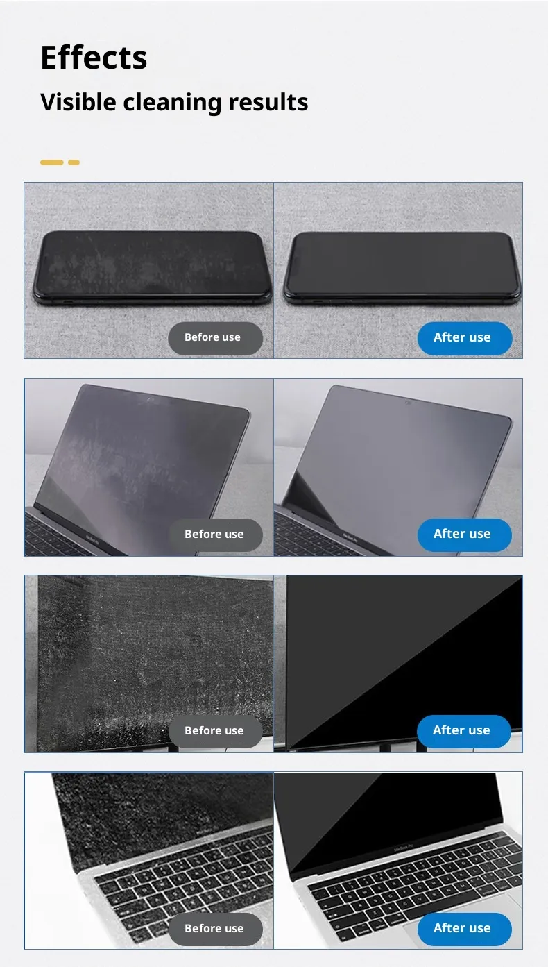 The cleaning solution contains a balanced mix of surfactants, solvents, preservatives, and mild fragrances to ensure effective cleaning without damaging sensitive coatings. The included cloth is gentle yet durable, allowing you to wipe away dust and grime without scratching or leaving residue. This kit helps extend the life of your devices while keeping them looking pristine.