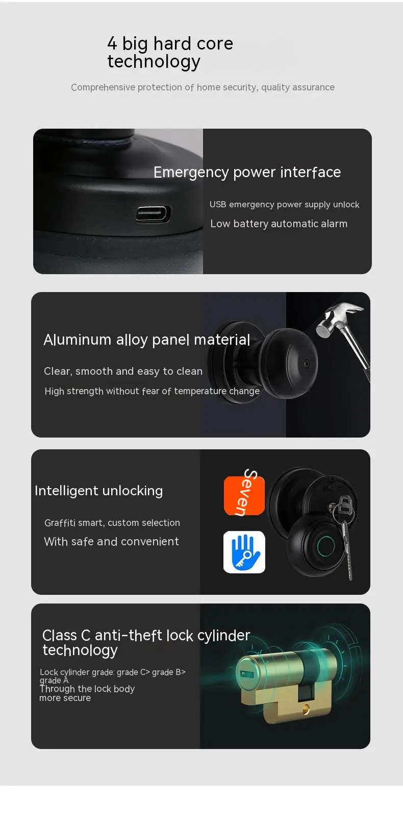 Security Door Smart Fingerprint Lock – Bluetooth Keyless Entry with Key Backup