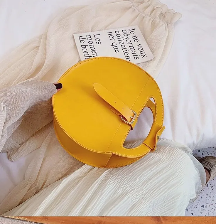 This versatile all-match handbag comes in four eye-catching colors: Black, Yellow, Pink, and Khaki — perfect for pairing with anything from casual streetwear to classy evening looks. Its compact round design keeps your essentials close while giving your outfit a trendy boost.