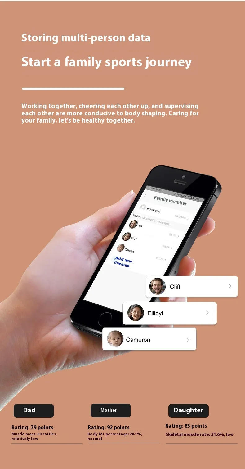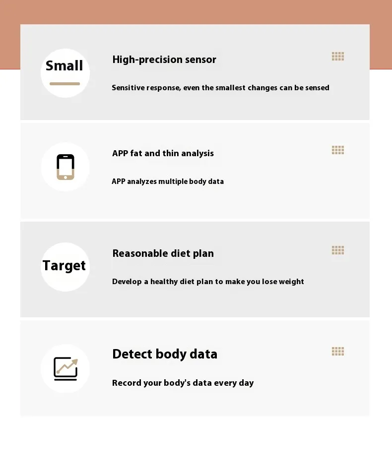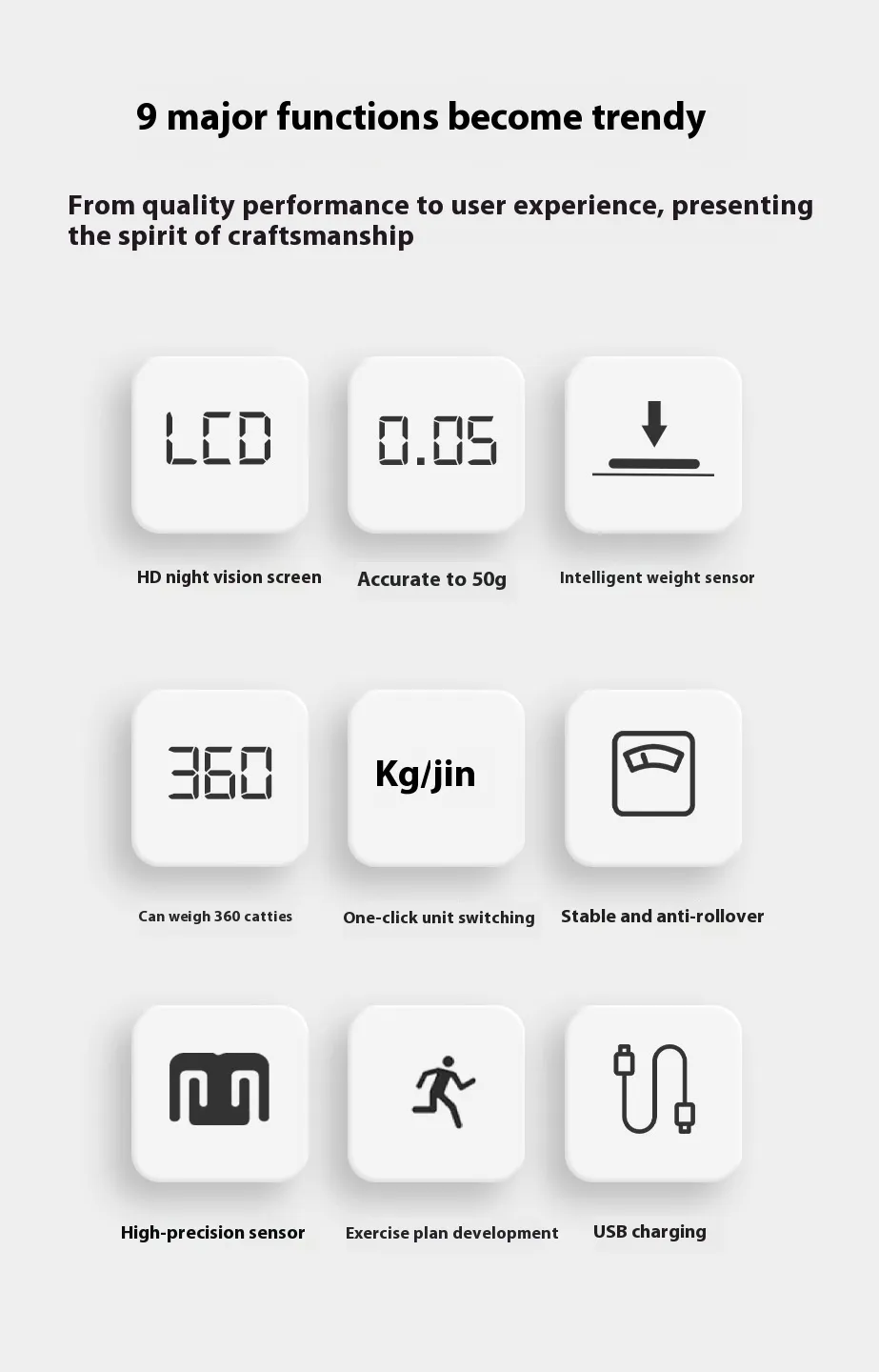 Function: weight measurement, fat measurement, calorie measurement, moisture measurement