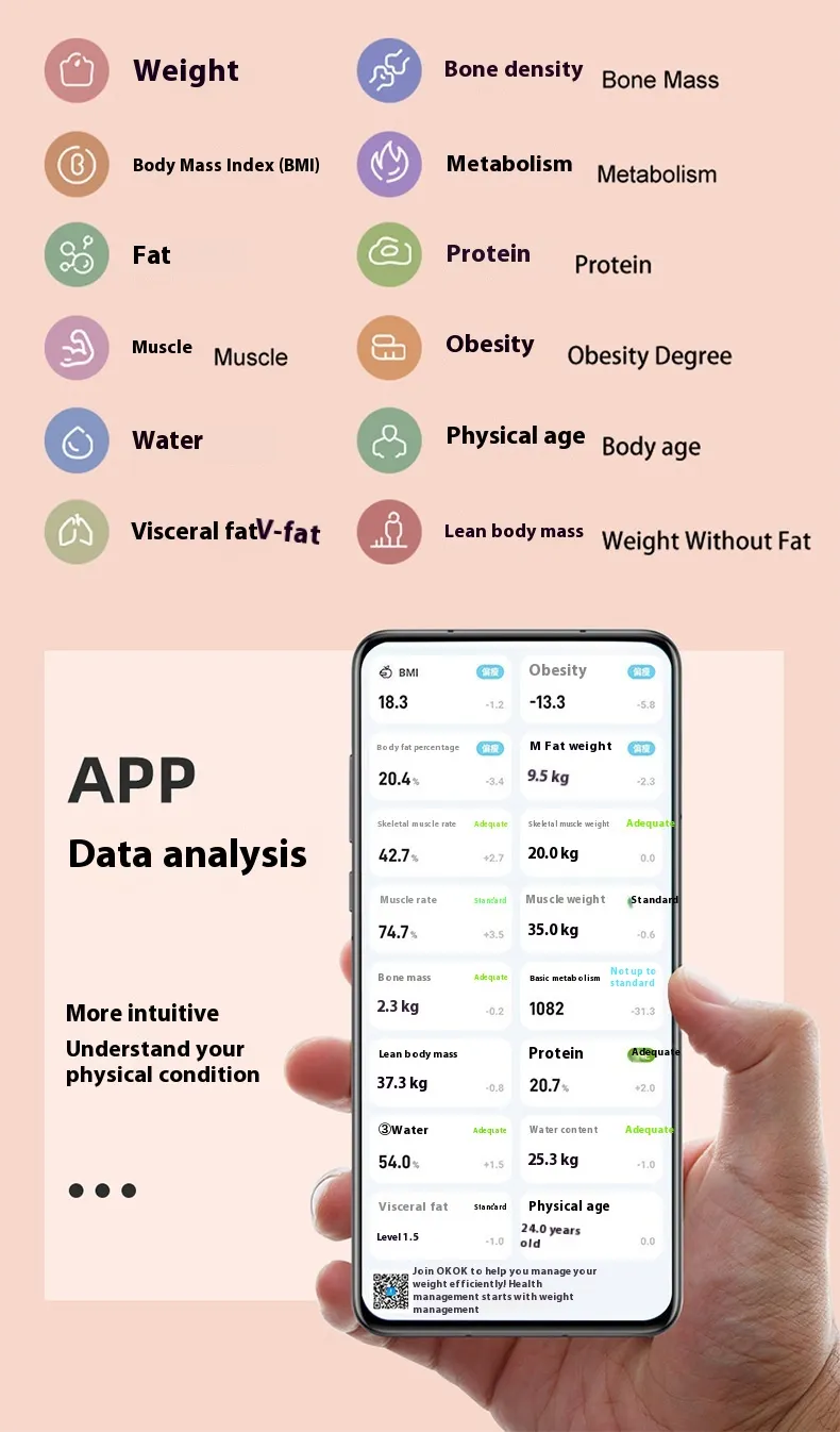 Perfect for home use by anyone focused on fitness or wellness, the compact and simple design blends into any space. Whether you’re looking to lose weight, maintain balance, or gain muscle, this body fat scale gives you reliable insights to guide your progress.