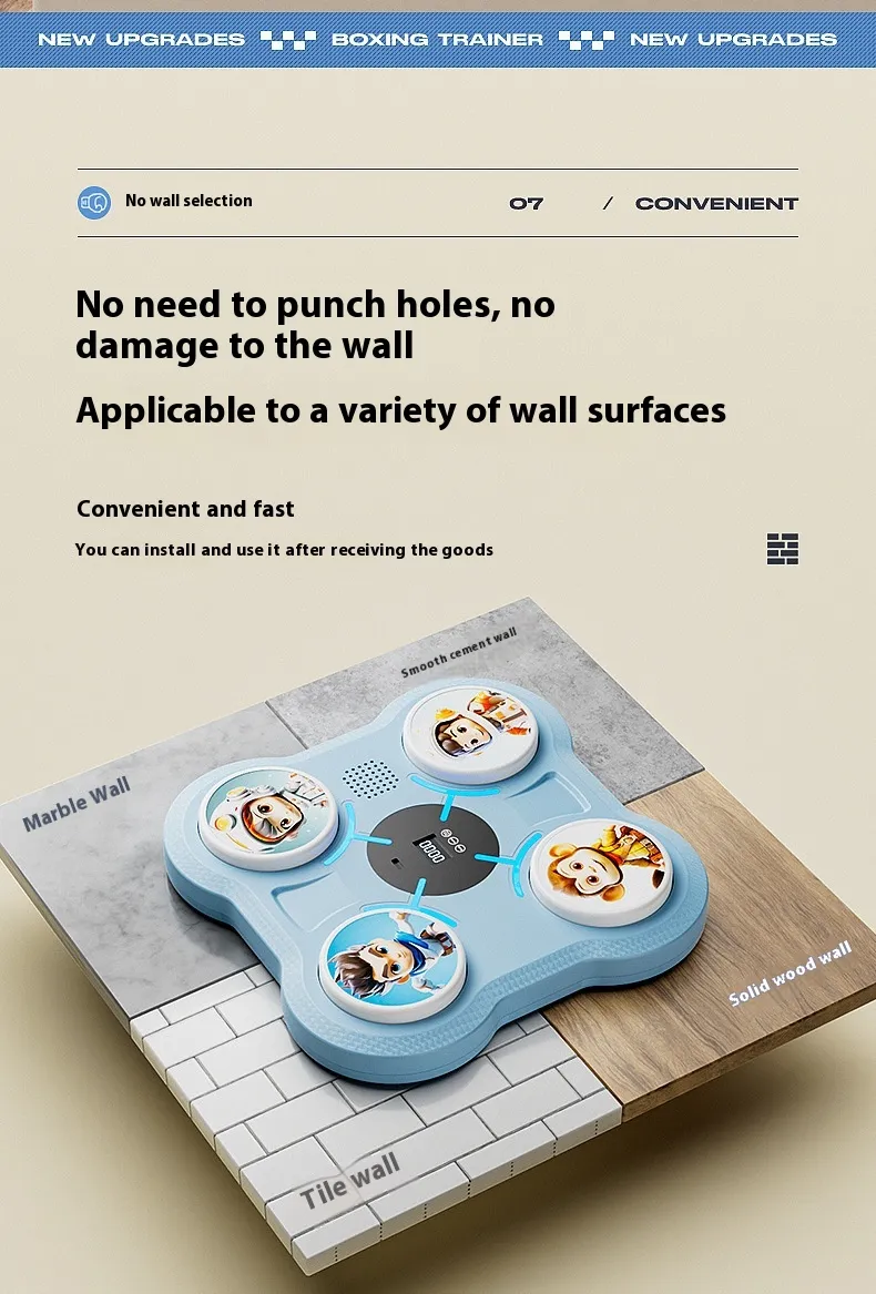 The Smart Music Boxing Machine – Wall-Mount Reaction Trainer is ideal for improving reflexes, coordination, and overall agility. Use it in bedrooms, living rooms, or home gyms for a full-body cardio workout that’s exciting and effective. No screws, no drills—just mount and punch your way to better fitness.