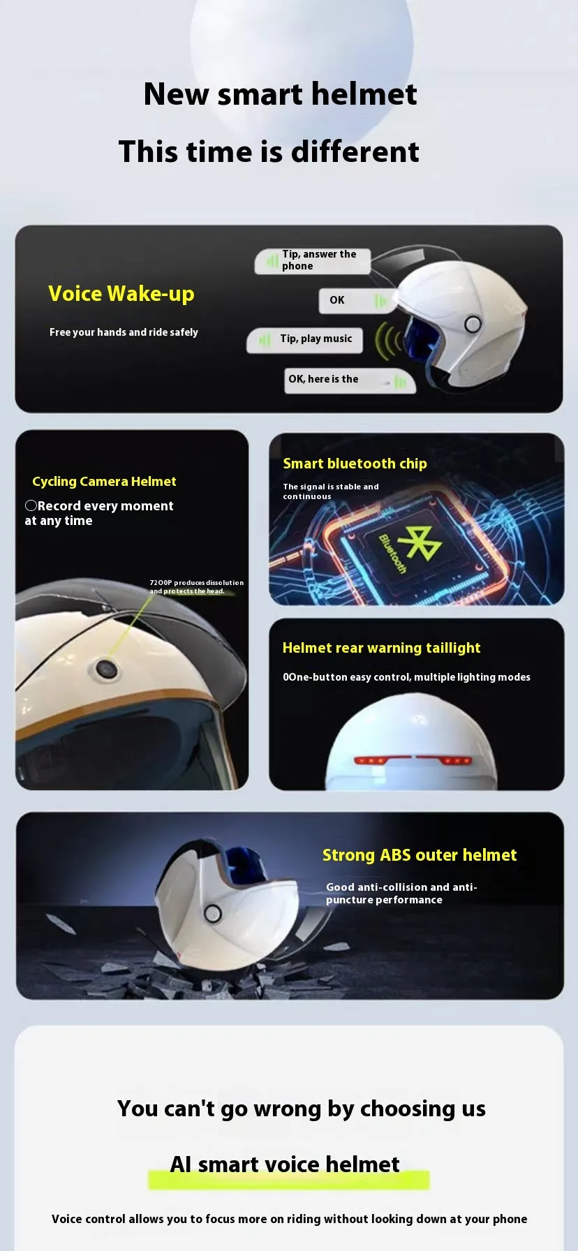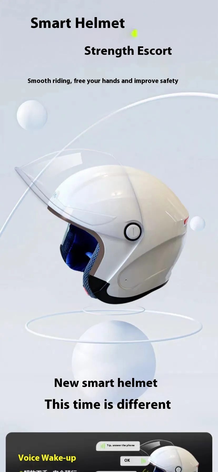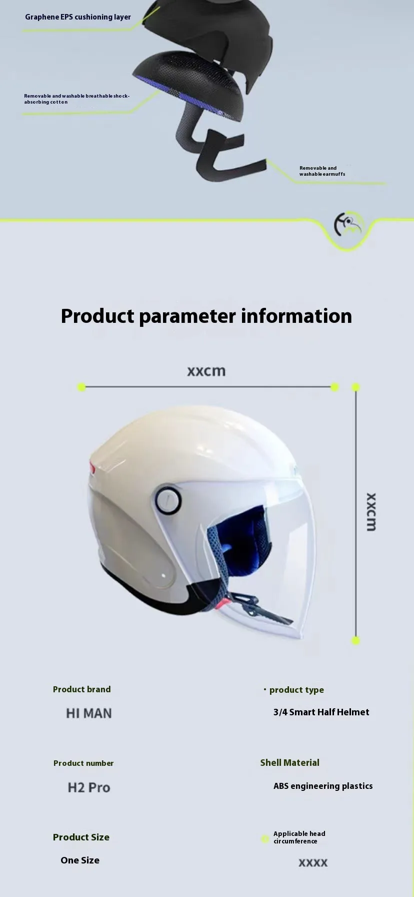 Crafted from high-strength ABS engineering plastic, the shell offers outstanding durability and impact resistance while keeping the helmet lightweight for extended comfort. The 3/4 half design provides full facial visibility and excellent ventilation, ensuring cool airflow during warm-weather rides. Available in black and white, this smart helmet pairs minimalist aesthetics with advanced performance for todayβs tech-savvy riders.