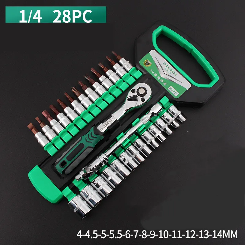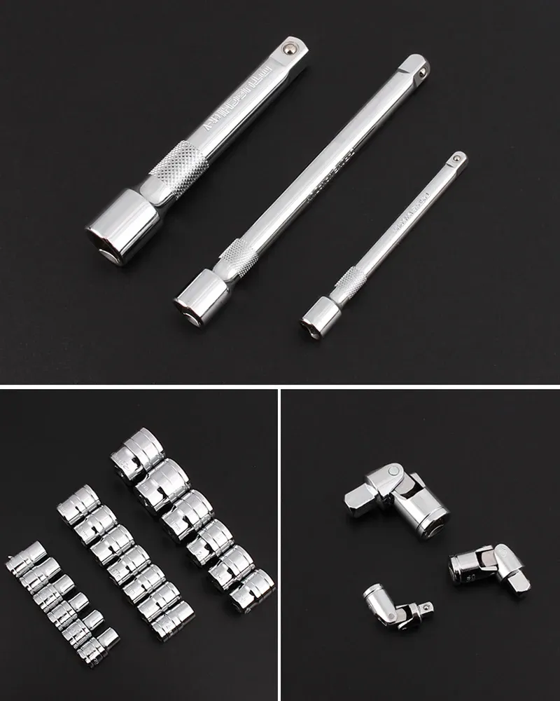 Compact and portable, the ratchet handle with socket sleeves allows for quick tightening and loosening, saving time and effort. Perfect for garages, workshops, and on-the-go repairs, this kit is an essential addition to any toolbox.