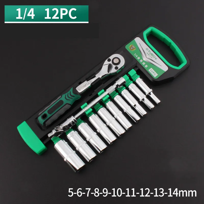 Compact and portable, the ratchet handle with socket sleeves allows for quick tightening and loosening, saving time and effort. Perfect for garages, workshops, and on-the-go repairs, this kit is an essential addition to any toolbox.