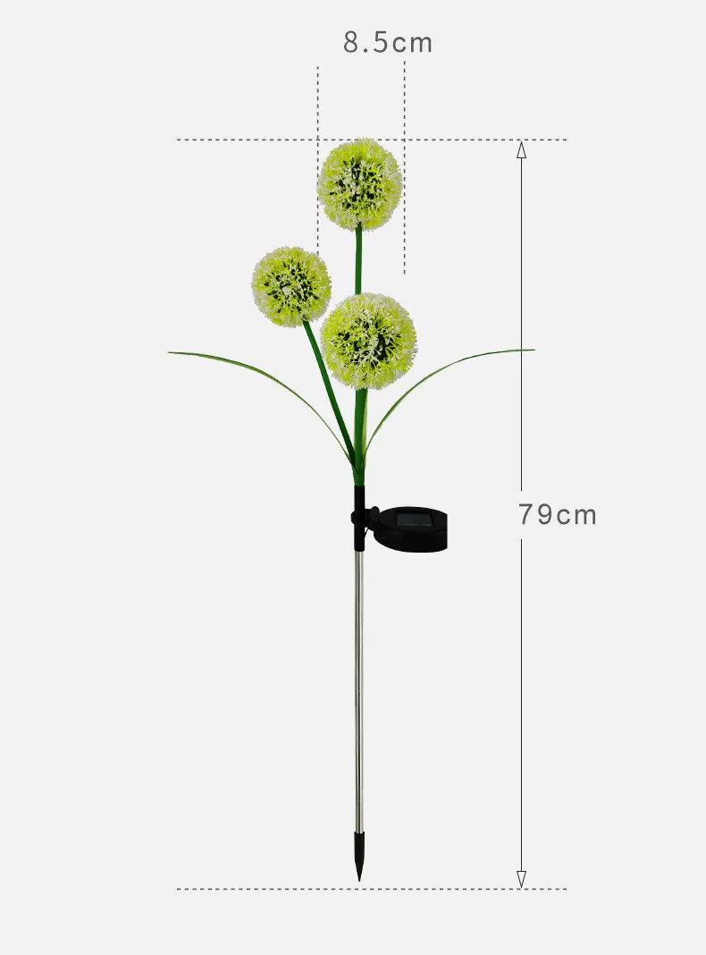 Bring charm and ambient illumination to your garden, patio, or outdoor space with this solar dandelion flower ball light. Designed with three bright LEDs, it emits a warm, inviting glow that enhances the beauty of outdoor settings while creating a cozy atmosphere for evenings. Its dandelion-inspired design adds a whimsical decorative touch to any landscape.