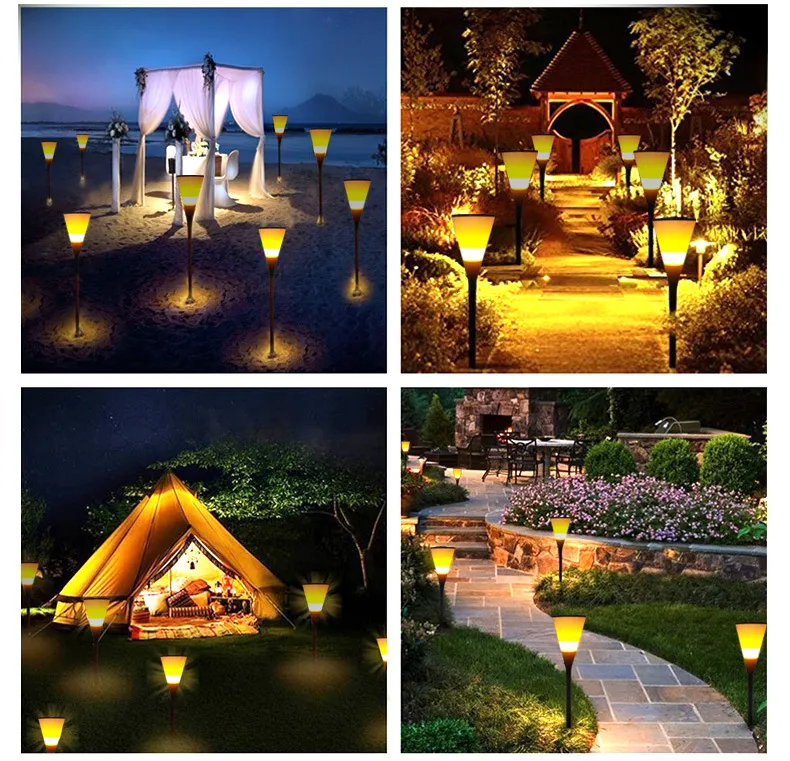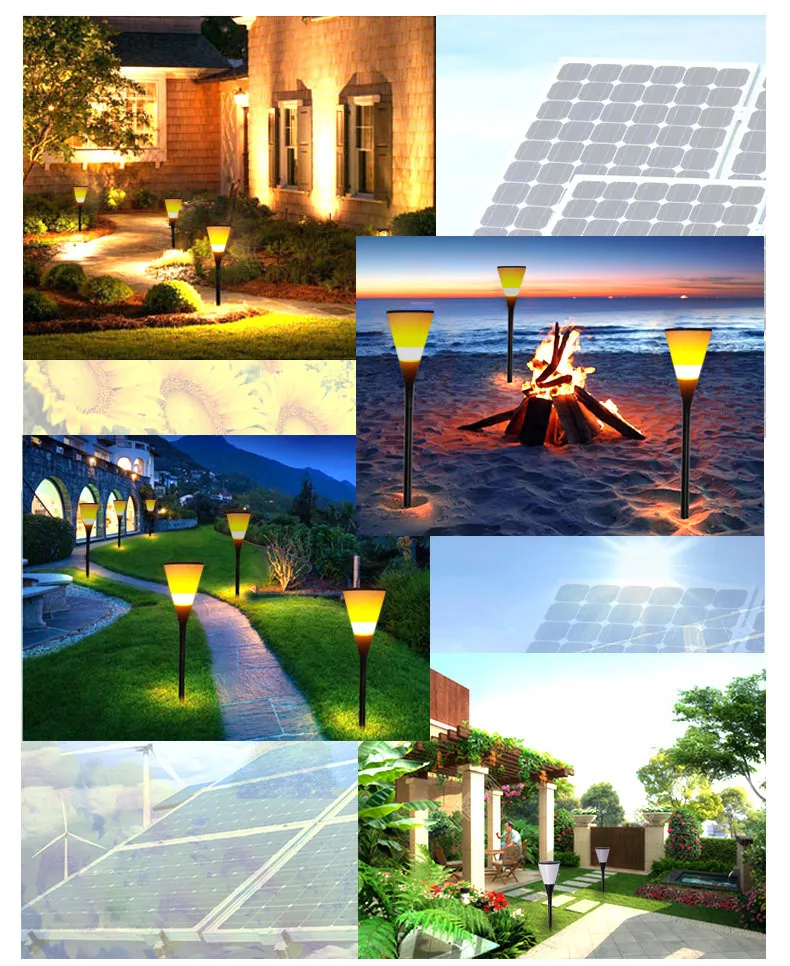 Solar Flame Torch Wall Light Amber LED Outdoor Induction Lamp