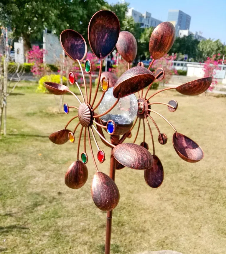 Crafted from durable metal with a baked paint finish, this garden plug-in is handmade for lasting quality. The integrated solar light powers the glass ball, charging during the day and illuminating at night. Its height of 200 cm makes it a standout decorative feature, while the rotating windmill adds dynamic movement to your garden, creating an enchanting visual effect.
