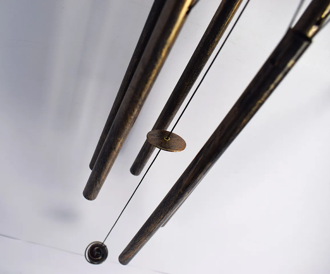 This solar LED sun and moon wind chime combines artistic design with functional outdoor lighting. Crafted from wrought iron and glass, the hollow sun and moon pendants create a mesmerizing decorative effect in gardens, patios, and landscape areas. The gentle movement of the chimes adds charm while enhancing ambient lighting.