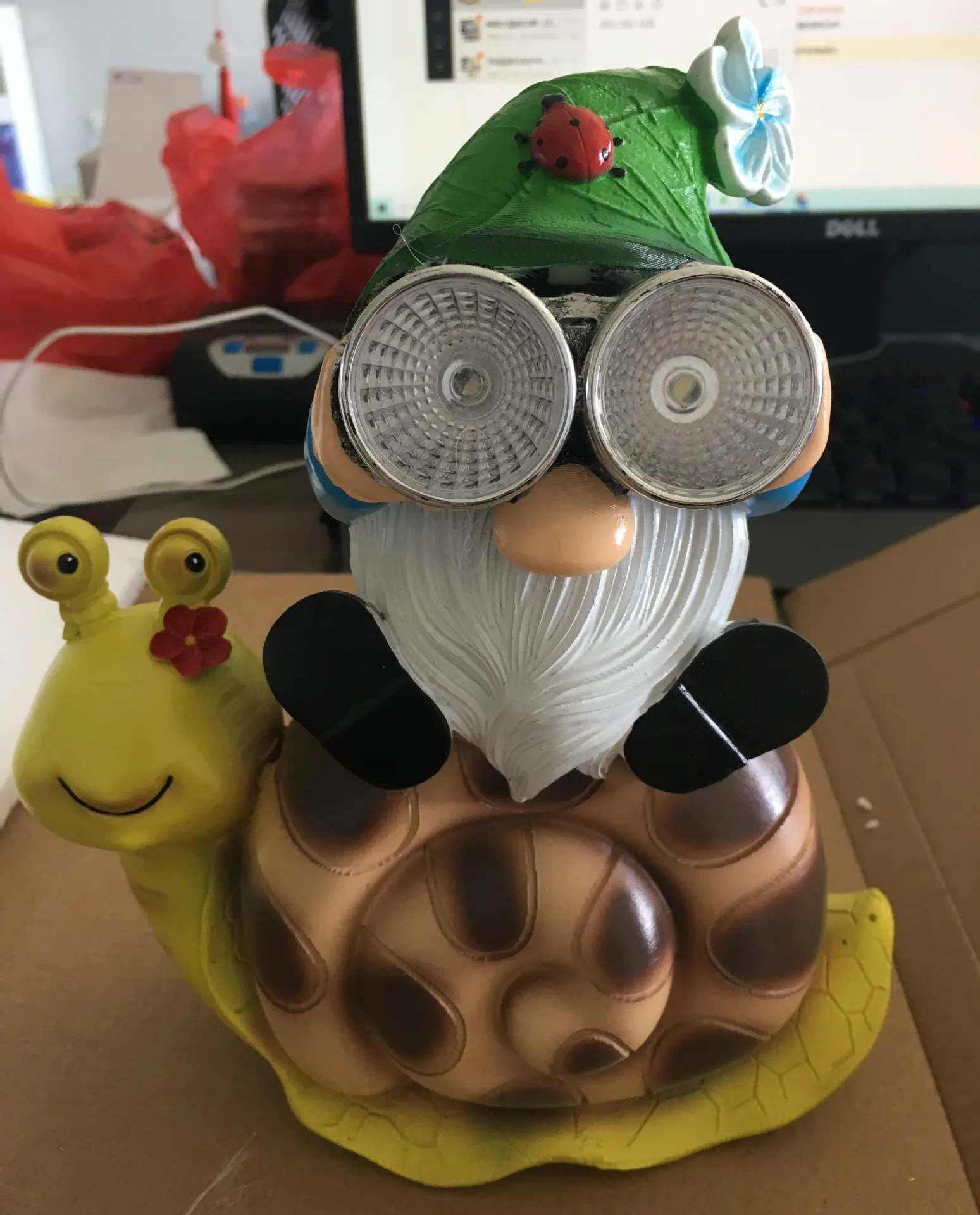 Solar Light Resin Gnome Snail Ornament for Outdoor Garden Decor