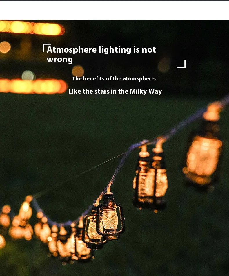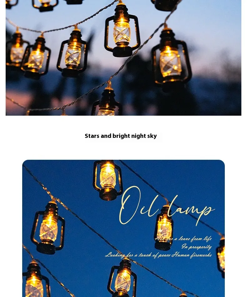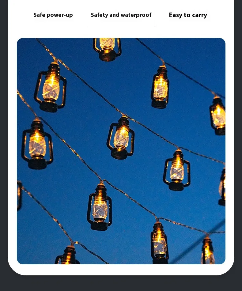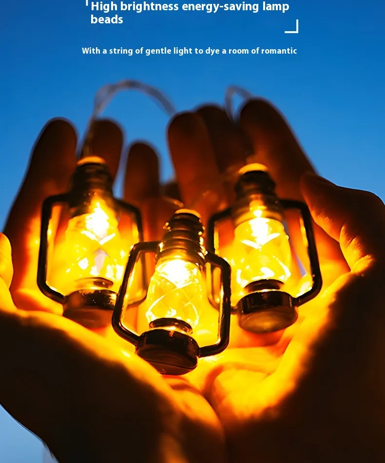 Solar-Powered Vintage Kerosene String Lights for Outdoor Camping