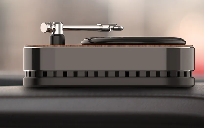 Available in classic black, space gray, Chinese red, and sky blue, this compact, rectangle-shaped car ornament enhances both aesthetics and comfort. Perfect as a gift or personal accessory, the solar-powered record player car diffuser combines timeless style, eco-friendly design, and refreshing aromatherapy in one sophisticated package.