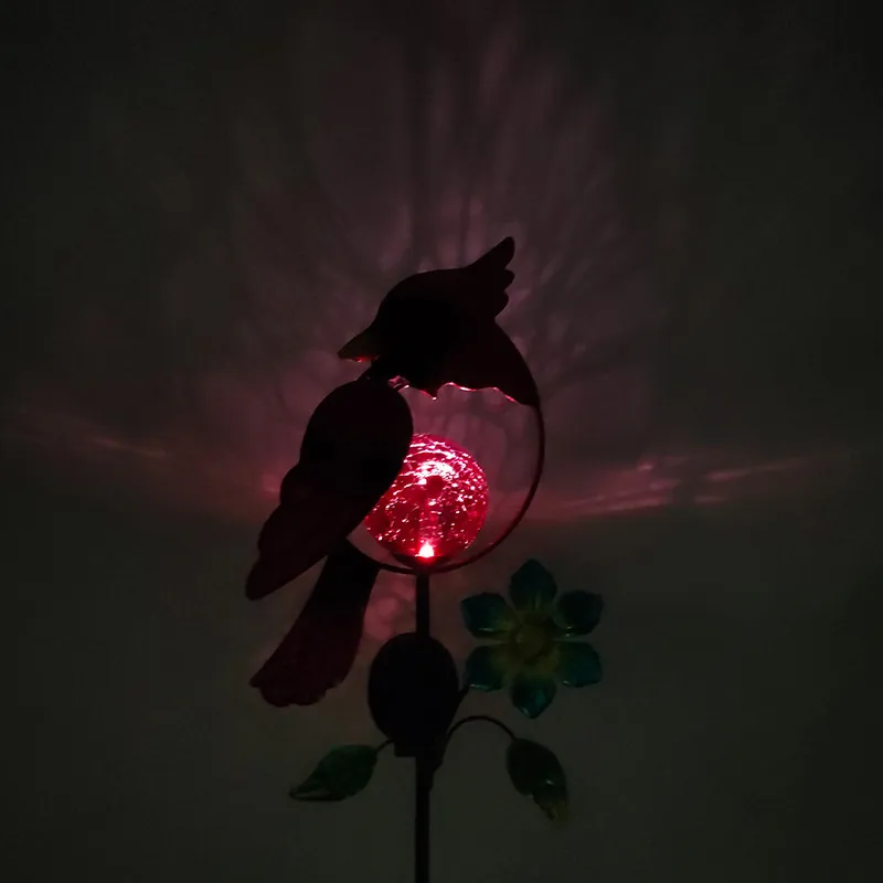 Solar Wrought Iron Red Bird Lawn Lamp for Garden & Outdoor Decor